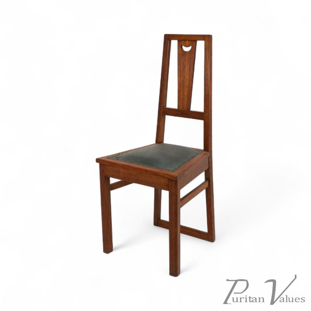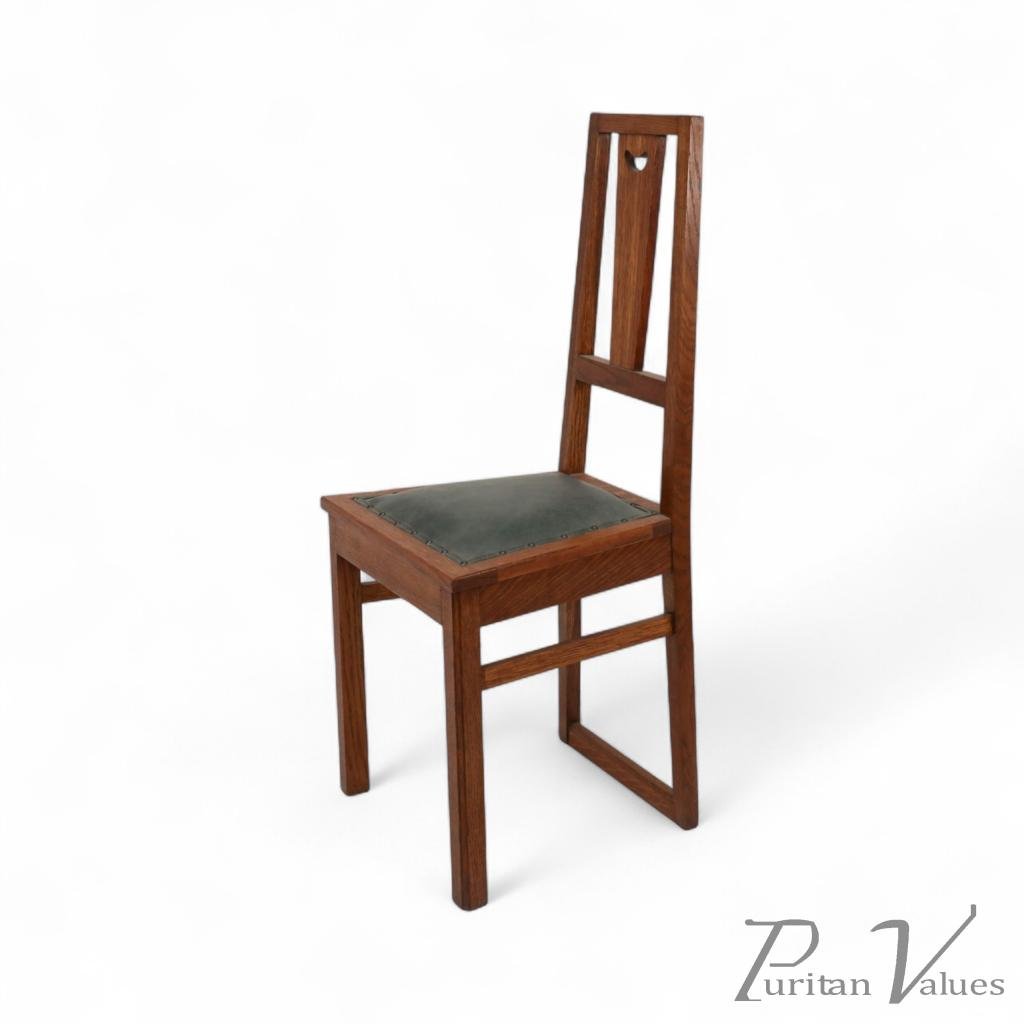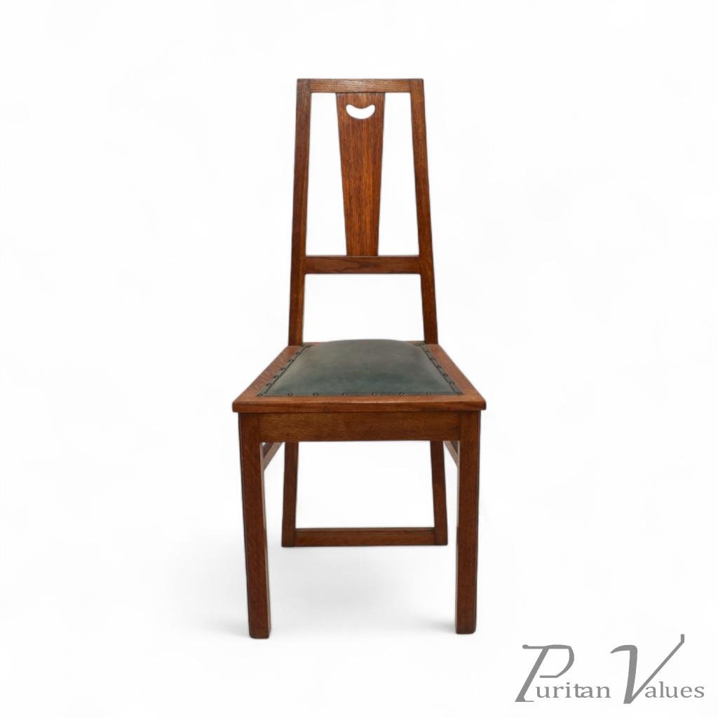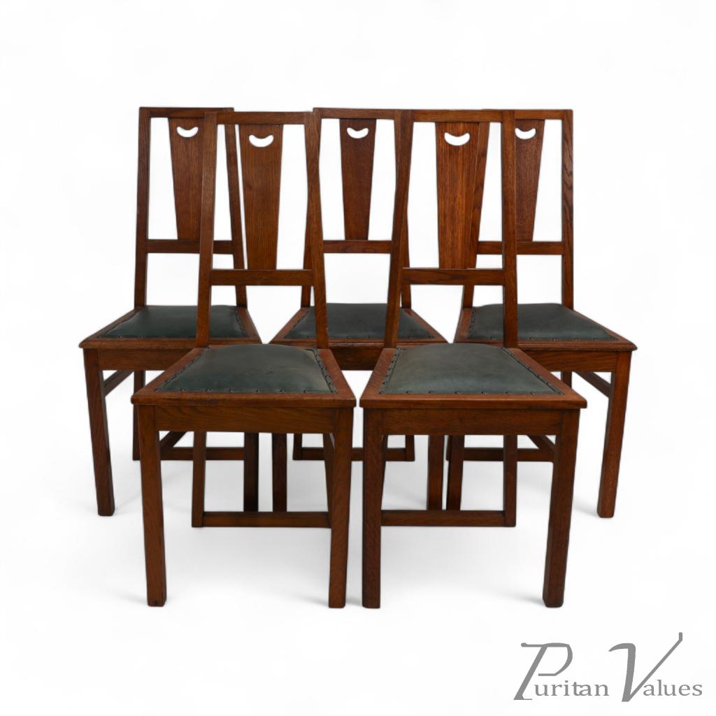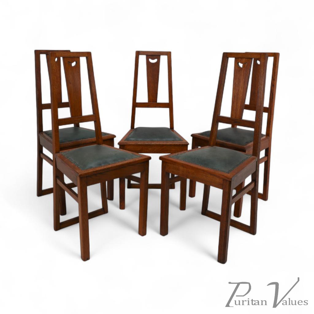 E. A. Taylor. A Set of Five Arts & Crafts Oak Side Chairs with Heart Cut-outs