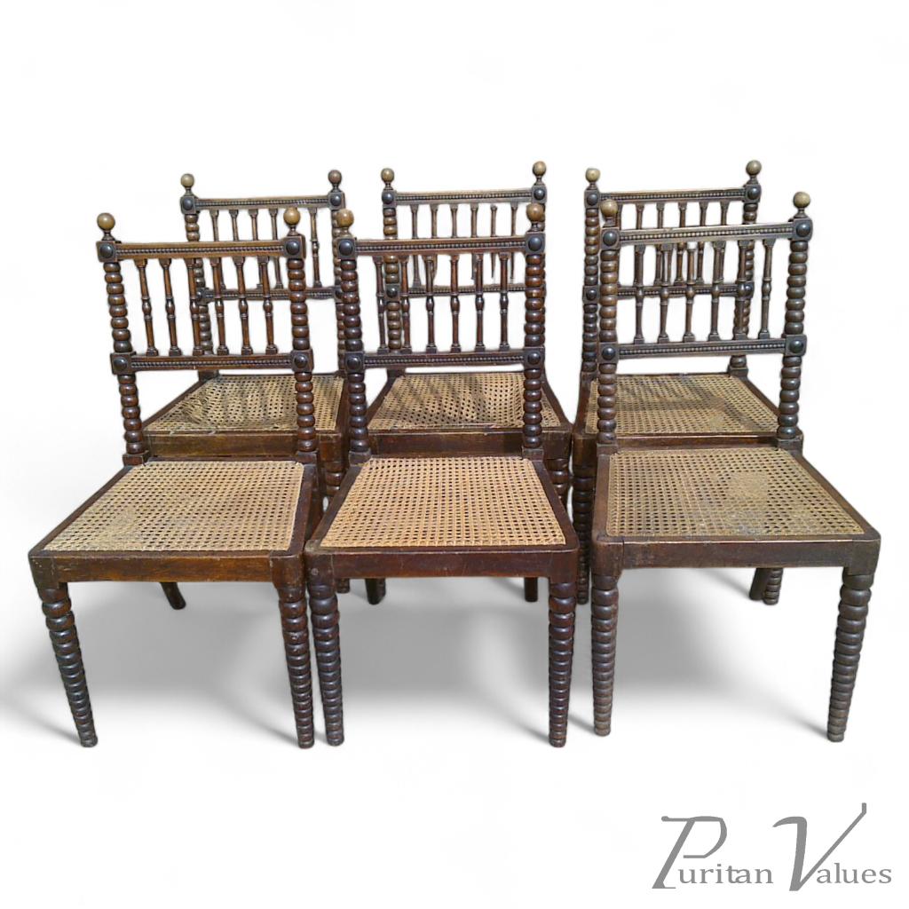 Edward William Godwin (attributed). A set of six simulated rosewood and caned dining chairs, 87cm high (two without the cane) See Soros, Susan Weber 'The Secular Furniture of E.W. Godwin', p. 102, illus. 122. Chairs similar to this were known to be in the possession of both Godwin himself and Ellen Terry.