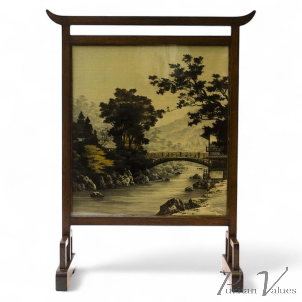 E W Godwin (attributed). An Anglo Japanese fire screen with Japanese silk