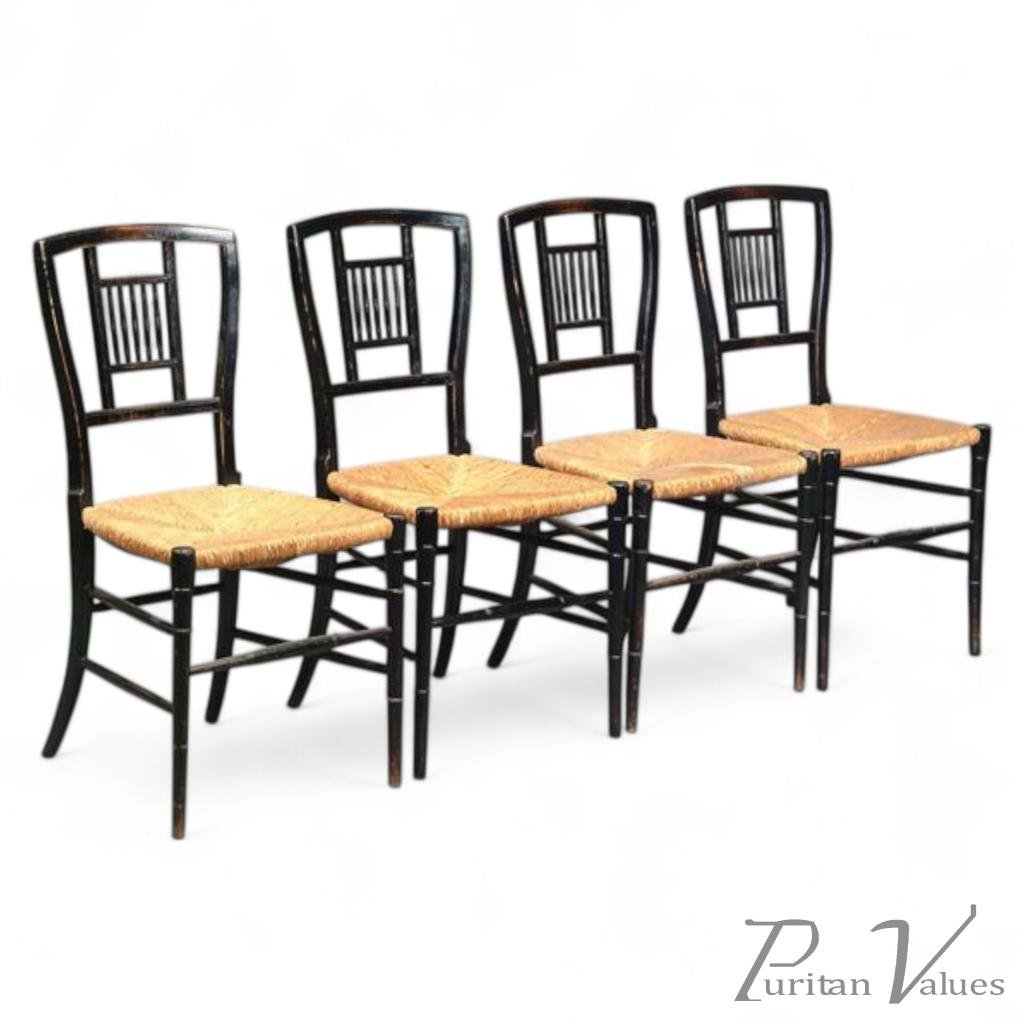 E W Godwin for William Watt. A set of four Anglo-Japanese rush seat chairs