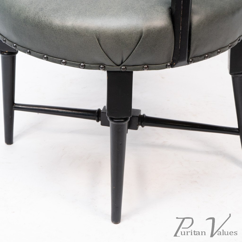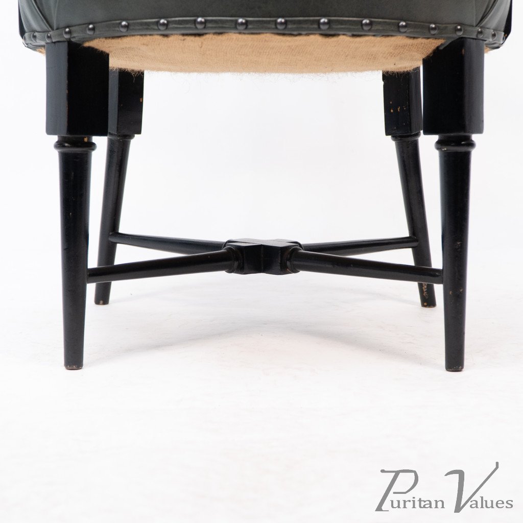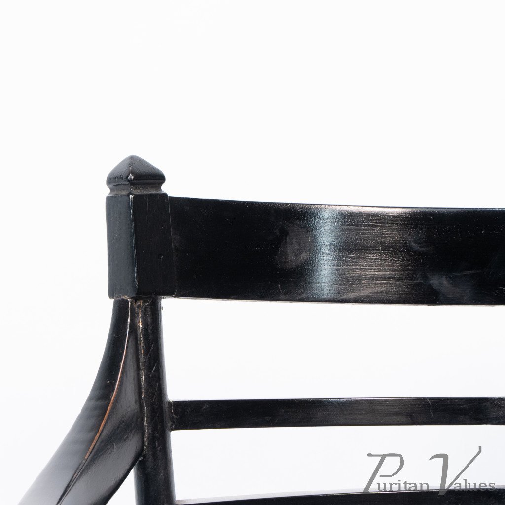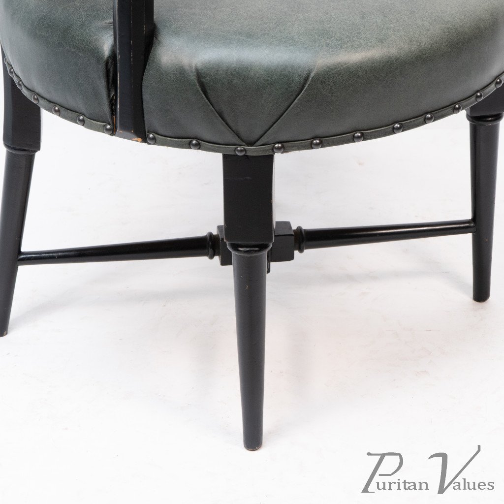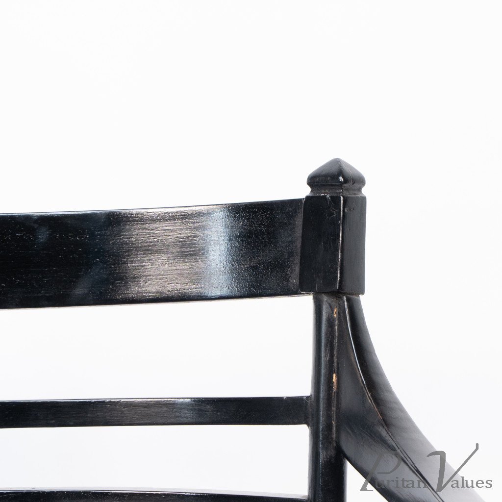 An Anglo-Japanese Old English or Jacobean ebonized armchair. See Susan Webber Soros, The Secular Furniture of E. W. Godwin, Illustration 109 for a cane-seat version. We also have another.