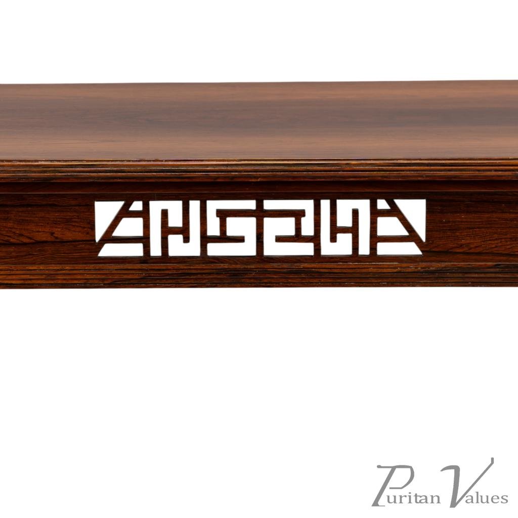 Made by Collinson & Lock. Stamped with their in-house design number to the underside: "8142". An exceptional Anglo-Japanese rosewood table, stylistically ahead of its time.