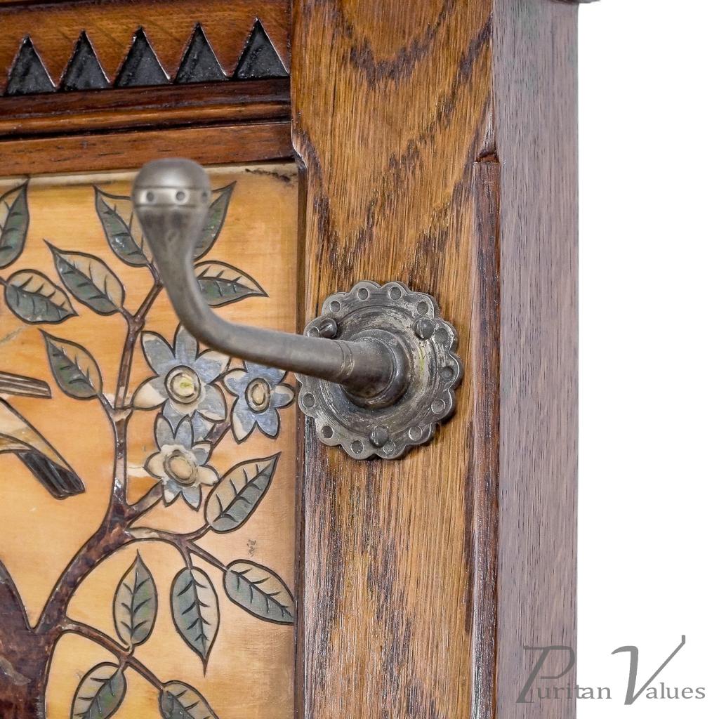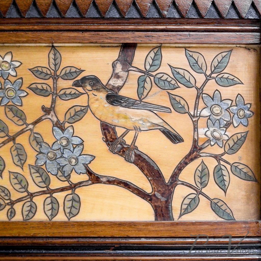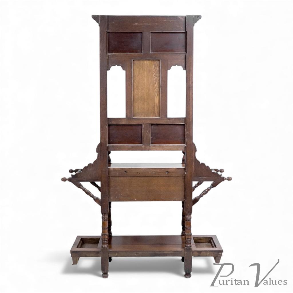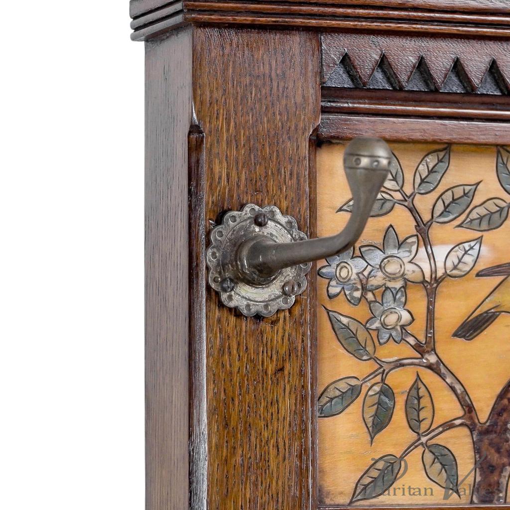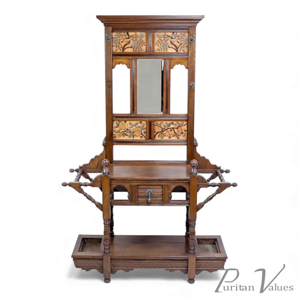 E. W. Godwin Style Of, Anglo-Japanese Oak Hallstand with Songbirds on Blossoms