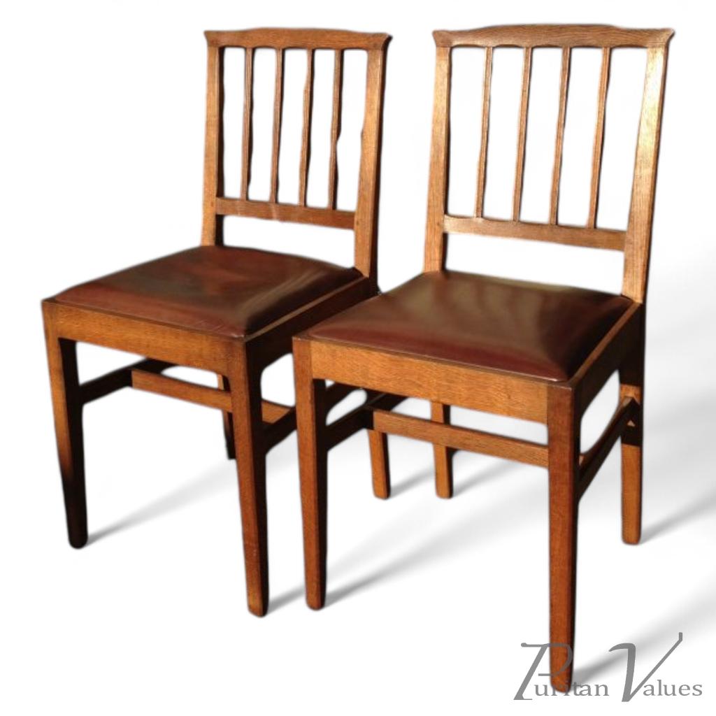 Edward Barnsley. A set of six Acorn Industries dining chairs with leather drop in seats.
