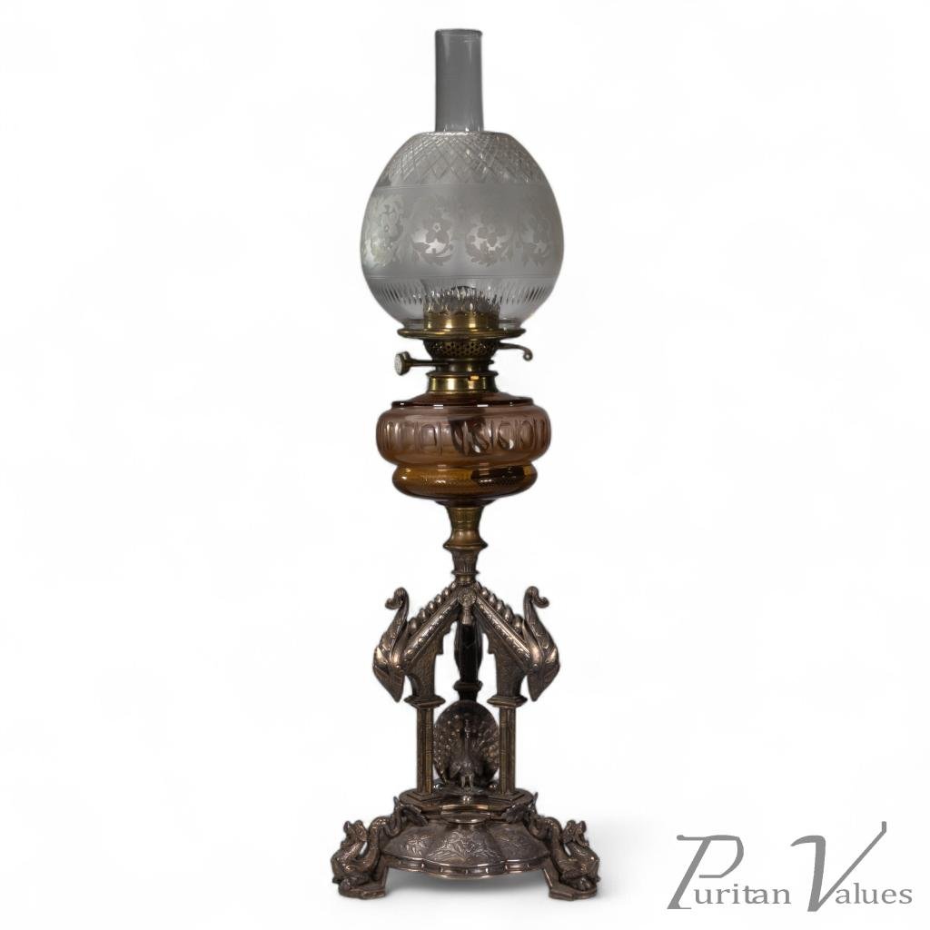 Elkington. An Exhibition Quality Aesthetic Movement Silver Plated Oil Lamp.