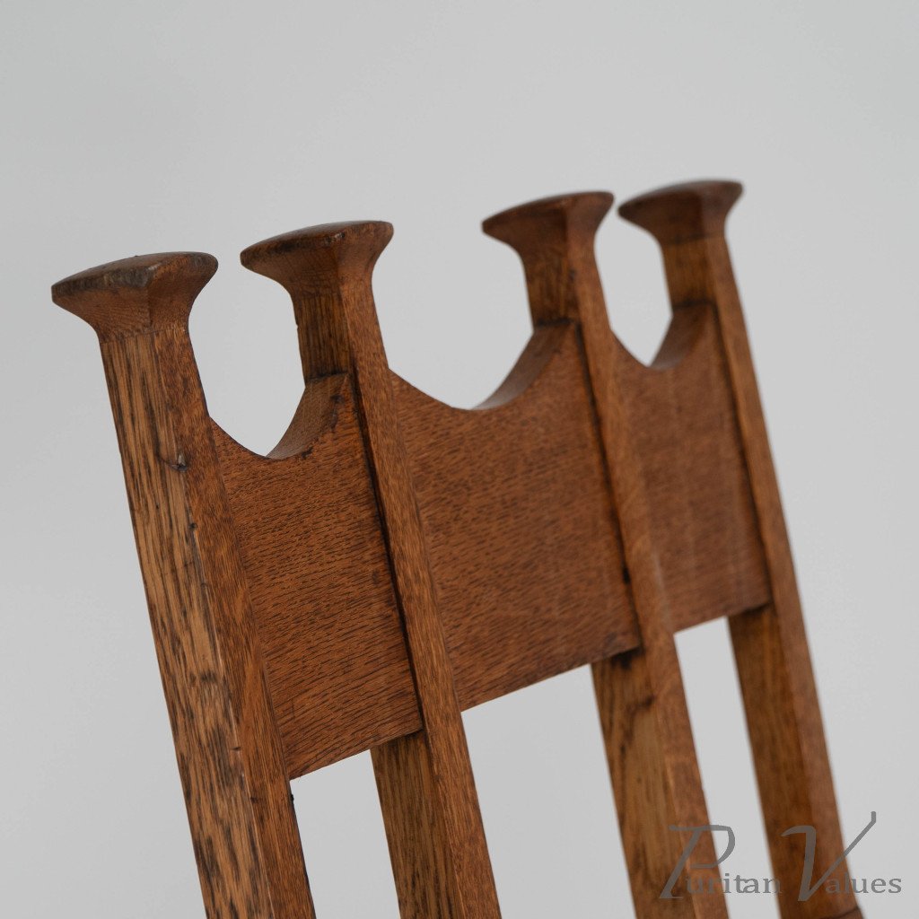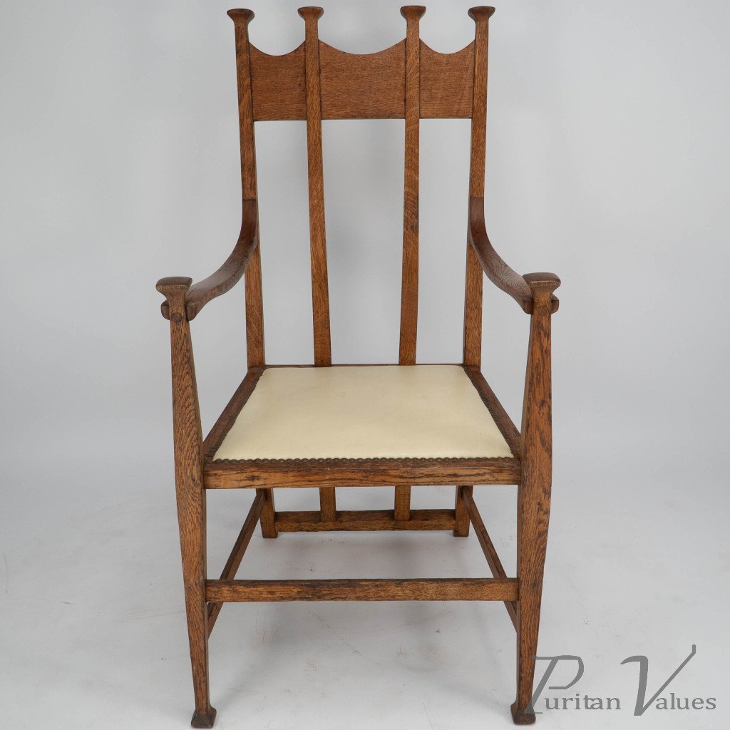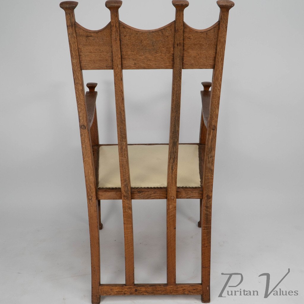G. M. Ellwood for J. S. Henry. An Oak Dining Armchairs with Throne Like Capped Finials