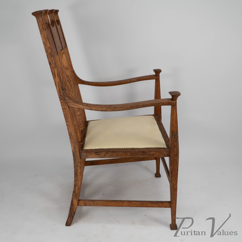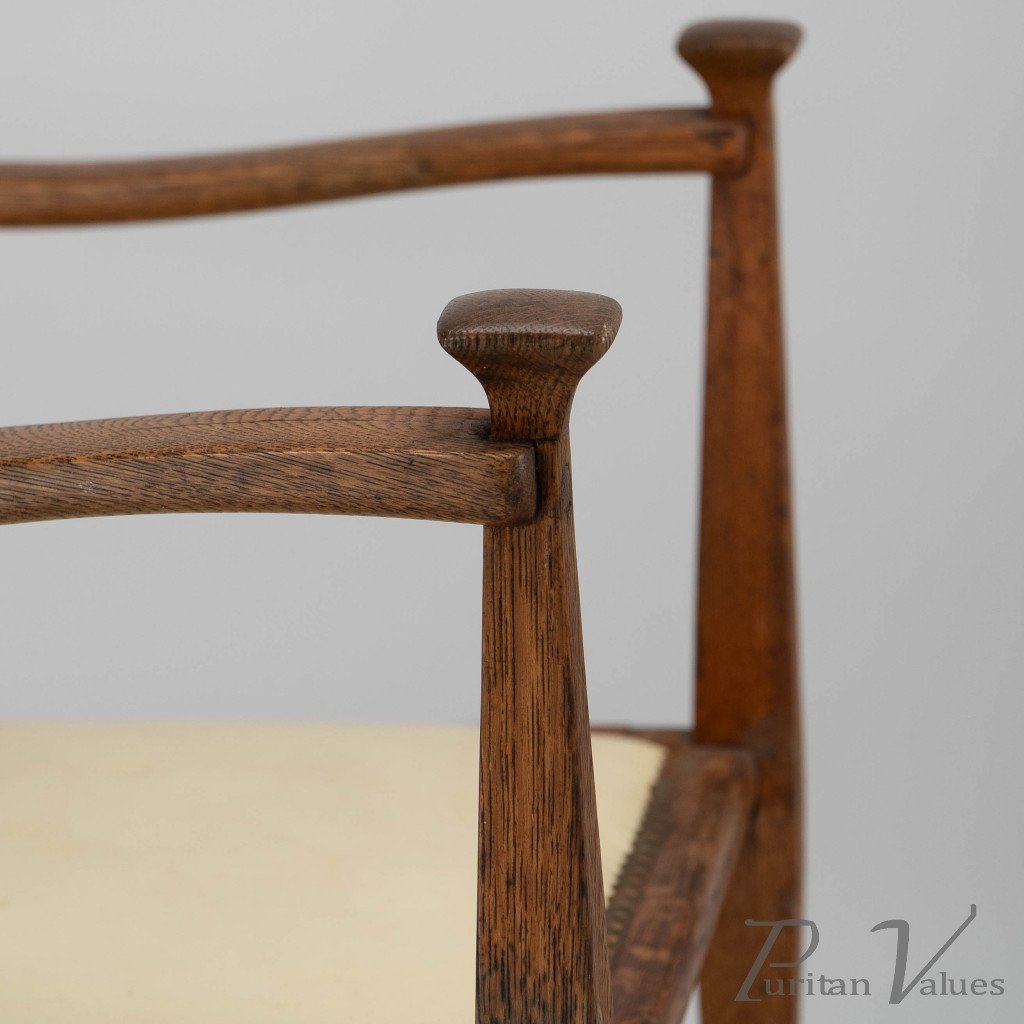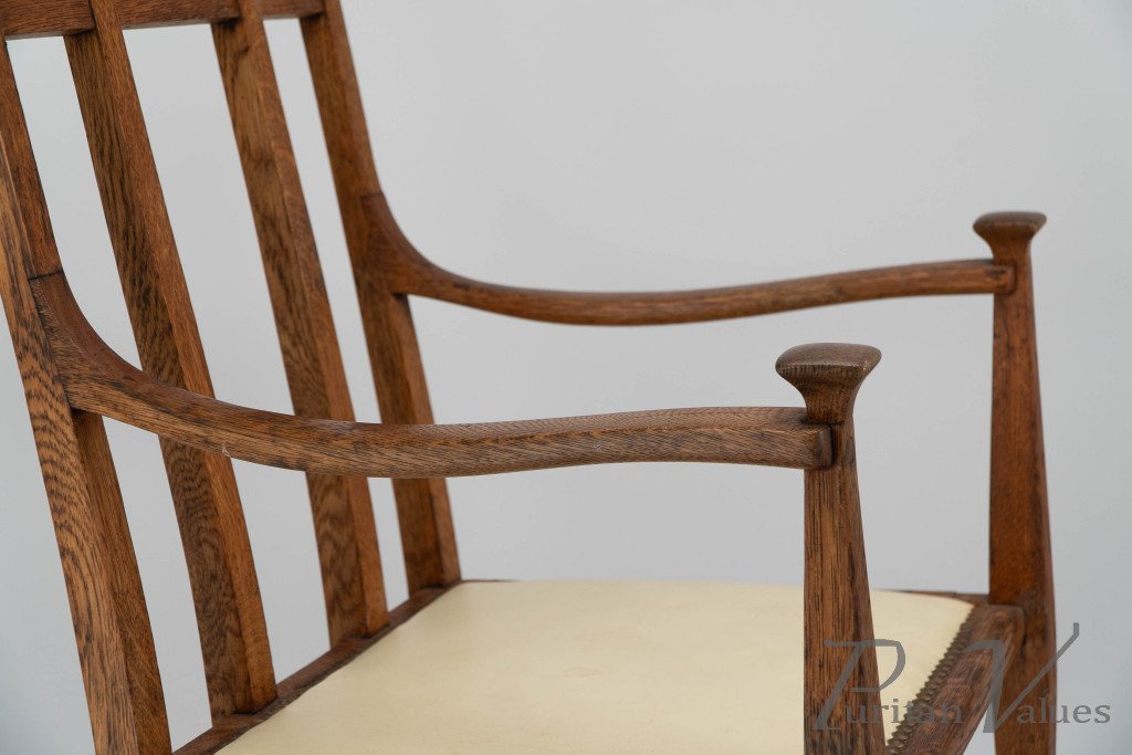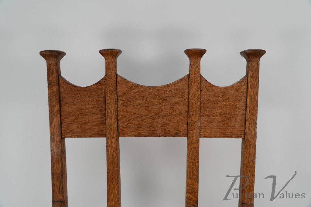 G. M. Ellwood for J. S. Henry. An Oak Dining Armchairs with Throne Like Capped Finials