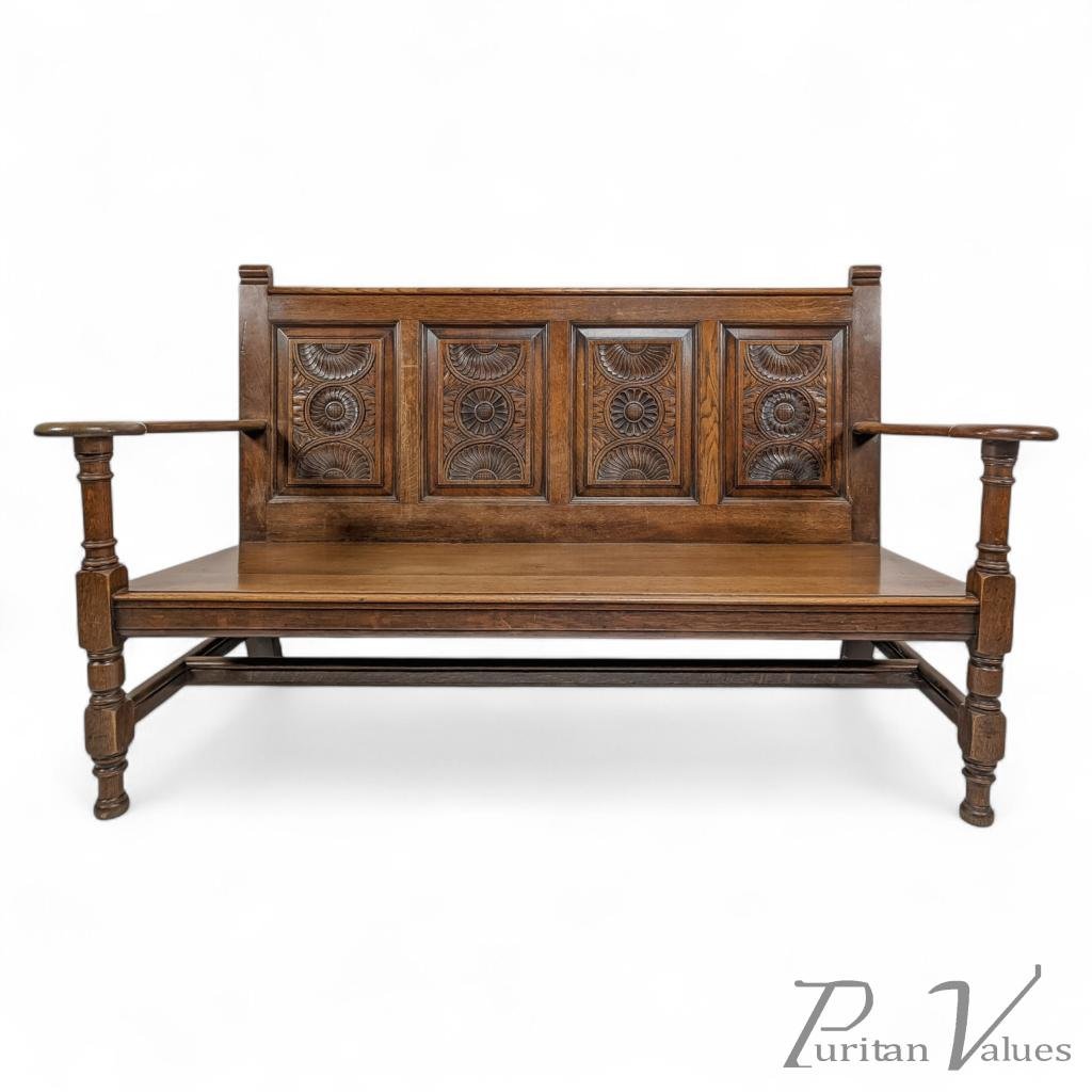 George Faulkner Armitage (1849-1937), a Carved Oak Settle with Carved Half Sunflowers