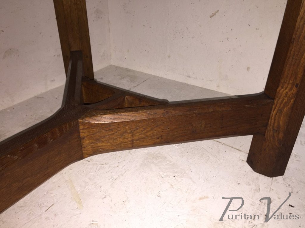 Gordon Russell (British, 1892-1980) ‘Hayrake’ oak Dining table. Design number X133, made be C. Beadle. Octagonal legs. And with 'hayrake' stretcher, Russell Workshops paper label underneath. H 29', W 72', D 32.5'. c1929 I do have another almost identical table available.