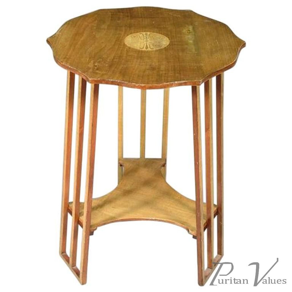 Green Stained and Inlaid Two-Tier Shaped Circular Table Attributed to GM Ellwood