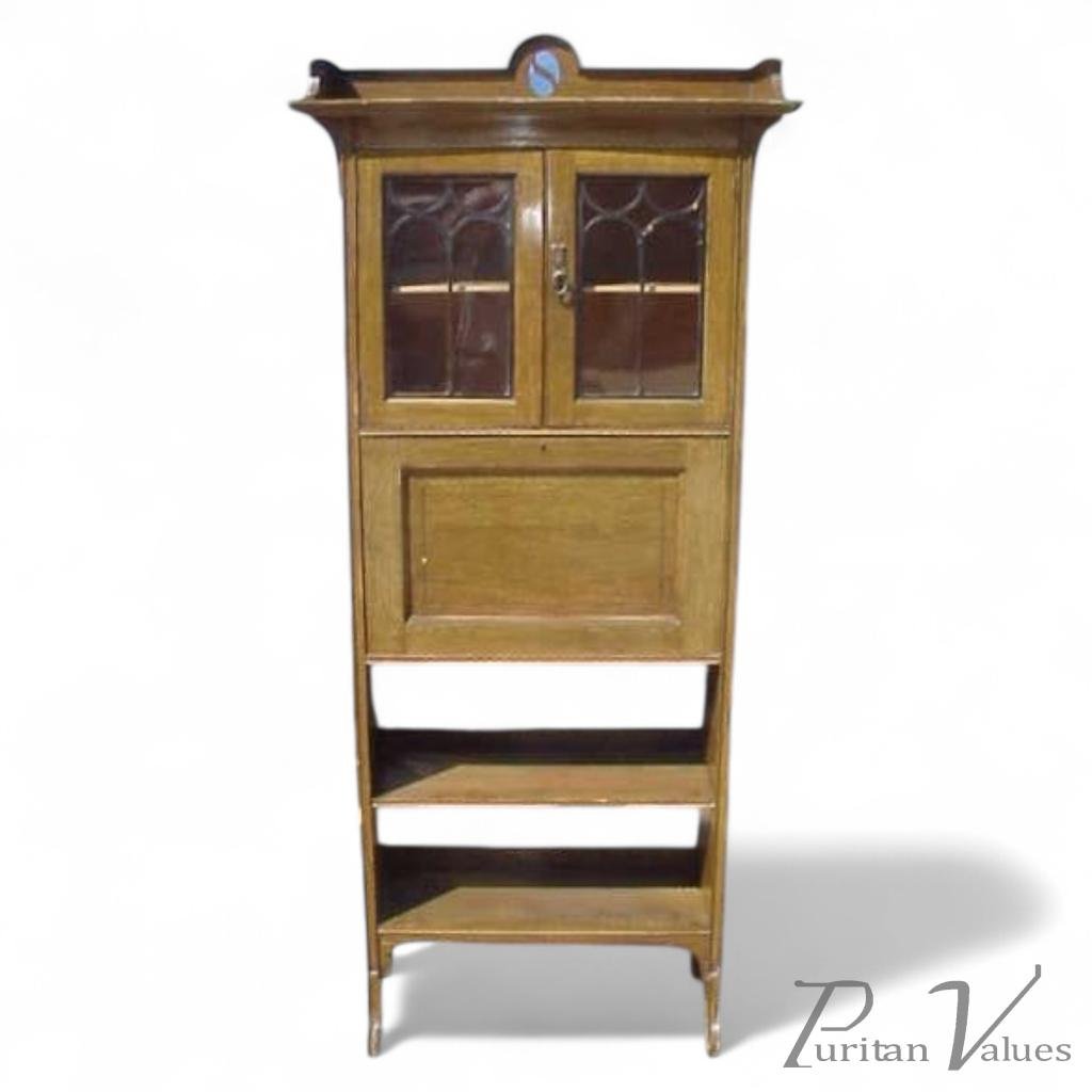 A good quality Glasgow style Arts and Crafts oak Bureau Bookcase