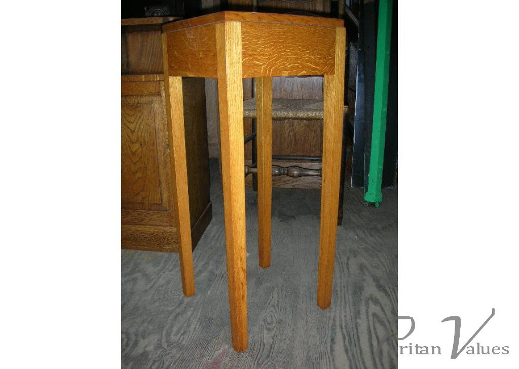 A Heals and Sons oak Torchere/plant stand with exposed biscuit joints to the top and square legs. Although unmarked this came from Overstrand Hall in North Norfolk a magnificent house built in the true Arts and Crafts style designed by Sir Edwin Lutyens and built between 1899 and 1901. It was turned into a convalescent home in the early 1930's and furnished by Heals.