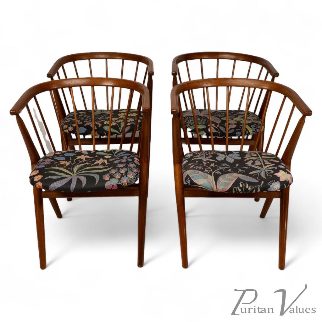 Sibast Furniture. A set of four No. 8 Danish teak cantilever armchairs. Original label underneath - "Sibast Furniture. Made in Denmark". Originally designed in 1953. With later fabric-covered seats.