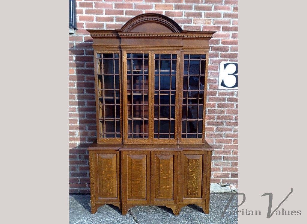 Howard and Sons. An exquisite and fine quality (1/4 sawn) oak breakfront bookcase