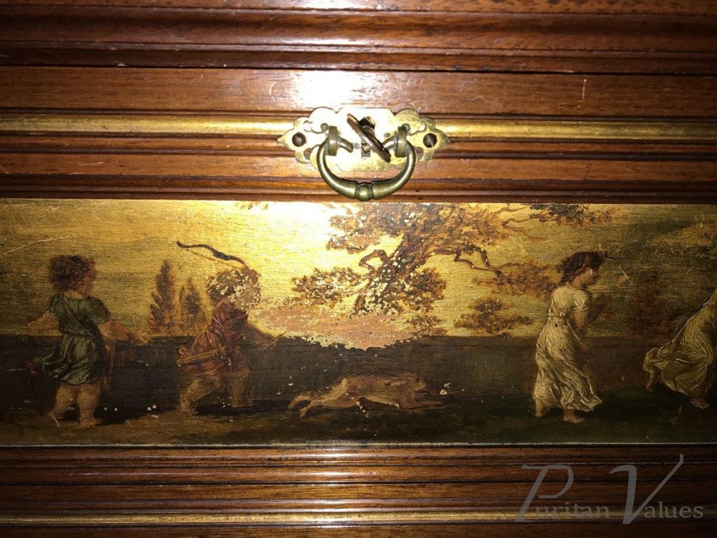 Hand painted Polychrome and Gesso with The Fables of Aesops' nursery scenes 'The Hare and the Tortoise'.