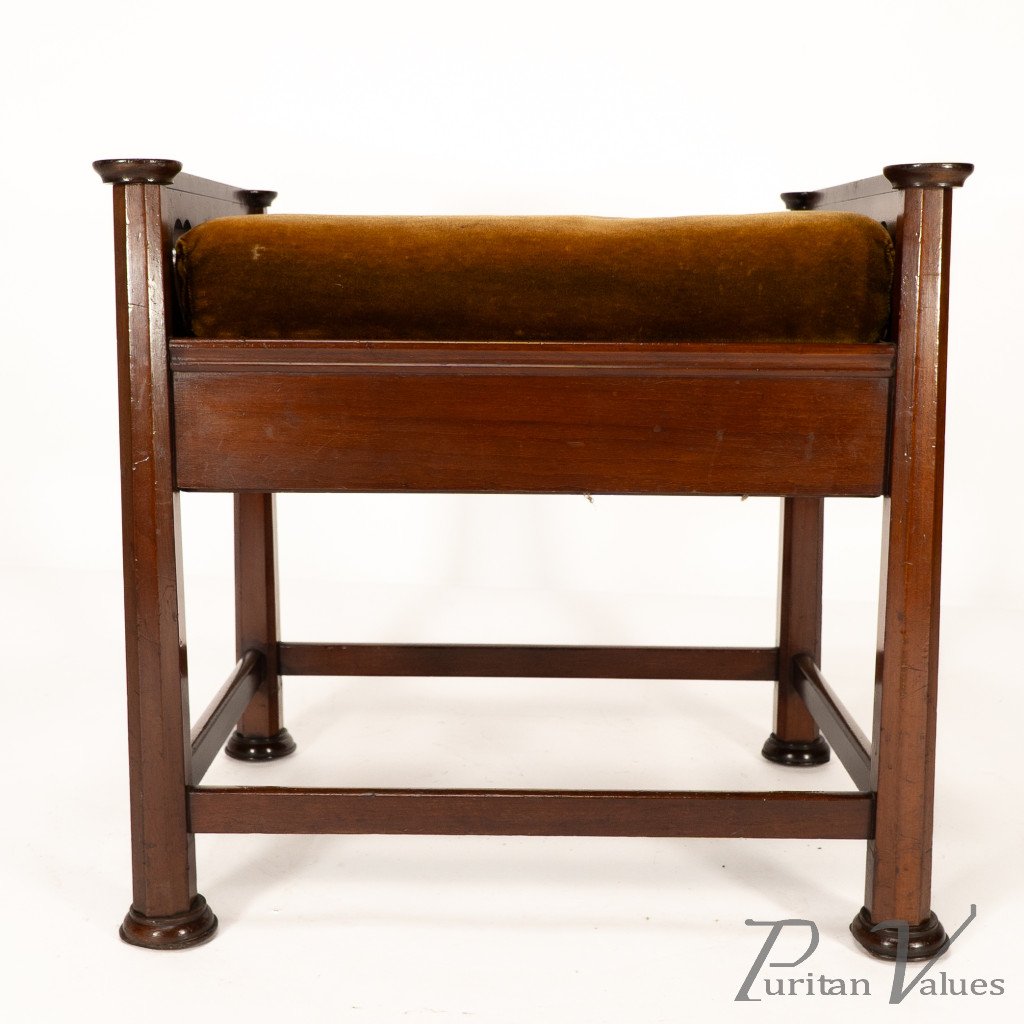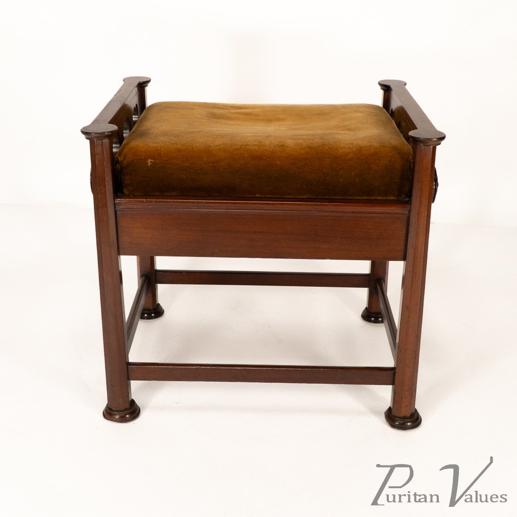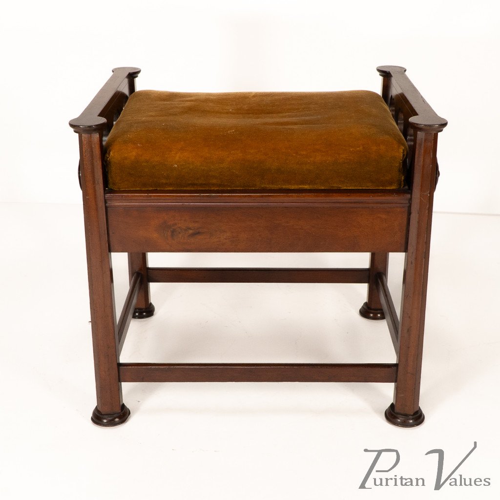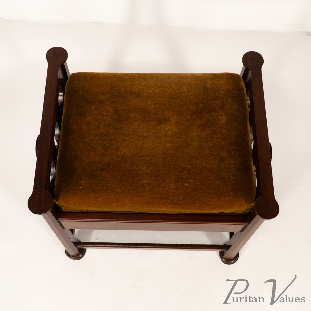 J. S. Henry in the Style of Voysey. An Arts & Crafts Walnut Adjustable Piano Stool