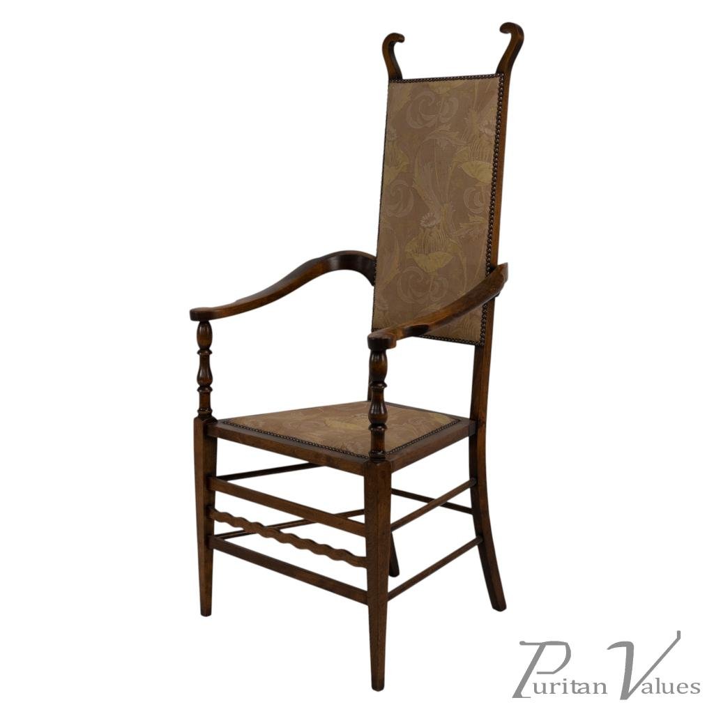 J. S. Henry Arts & Craft Walnut Armchair with Period Stylised Floral Fabric