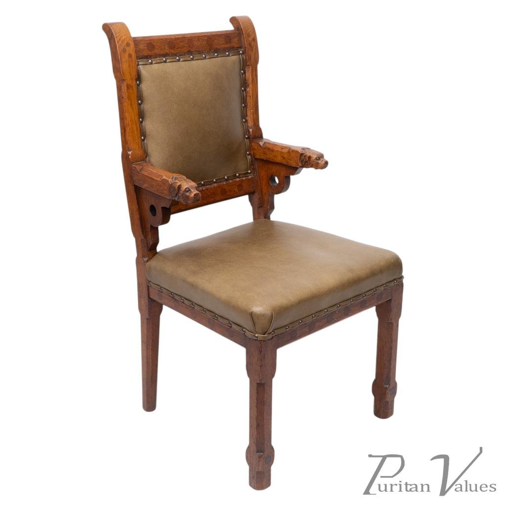 John Pollard Seddon a Rare Gothic Oak Armchair with Carved Dog Heads to the Arms