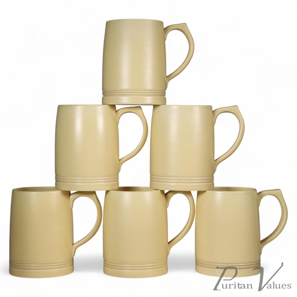 A rare complete and original set of six soft straw-coloured lemonade mugs, which have been together all their lives and they are all mint.