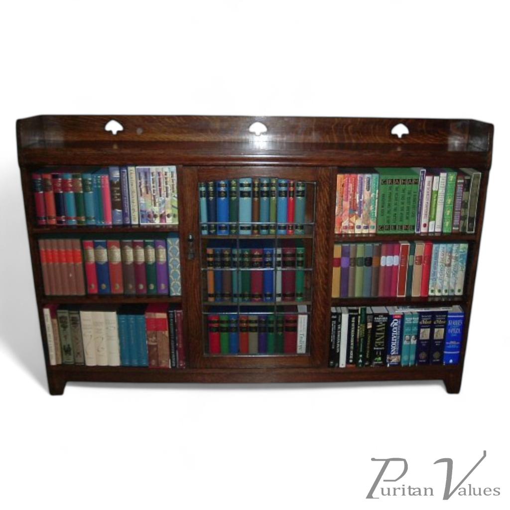 A quality Arts and Crafts oak bookcase by Liberty and Co. Height 47", Length 72", Depth 10". Circa 1895.