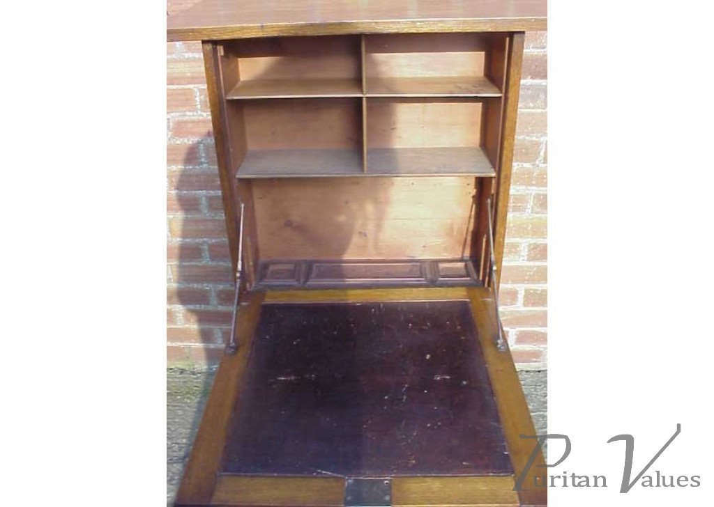 Liberty and Co. A rare Arts and Crafts oak bureau with Moorish details