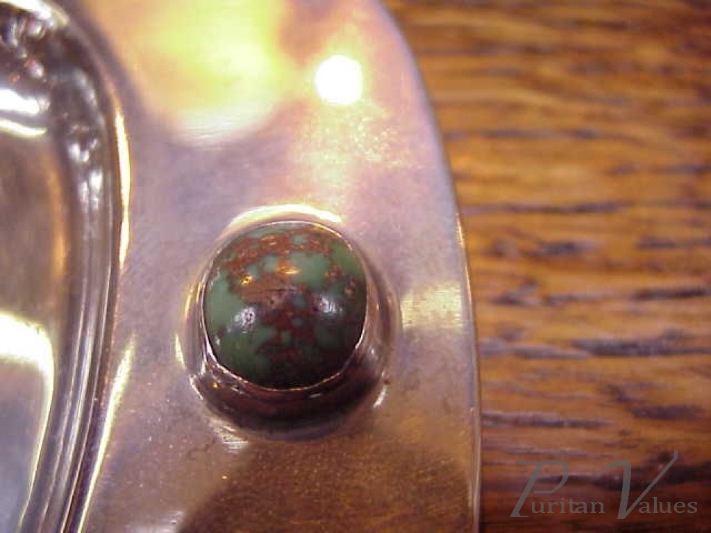 Liberty and Co. A silver tray with a Green and a Blue Torquoise cabachon to each end