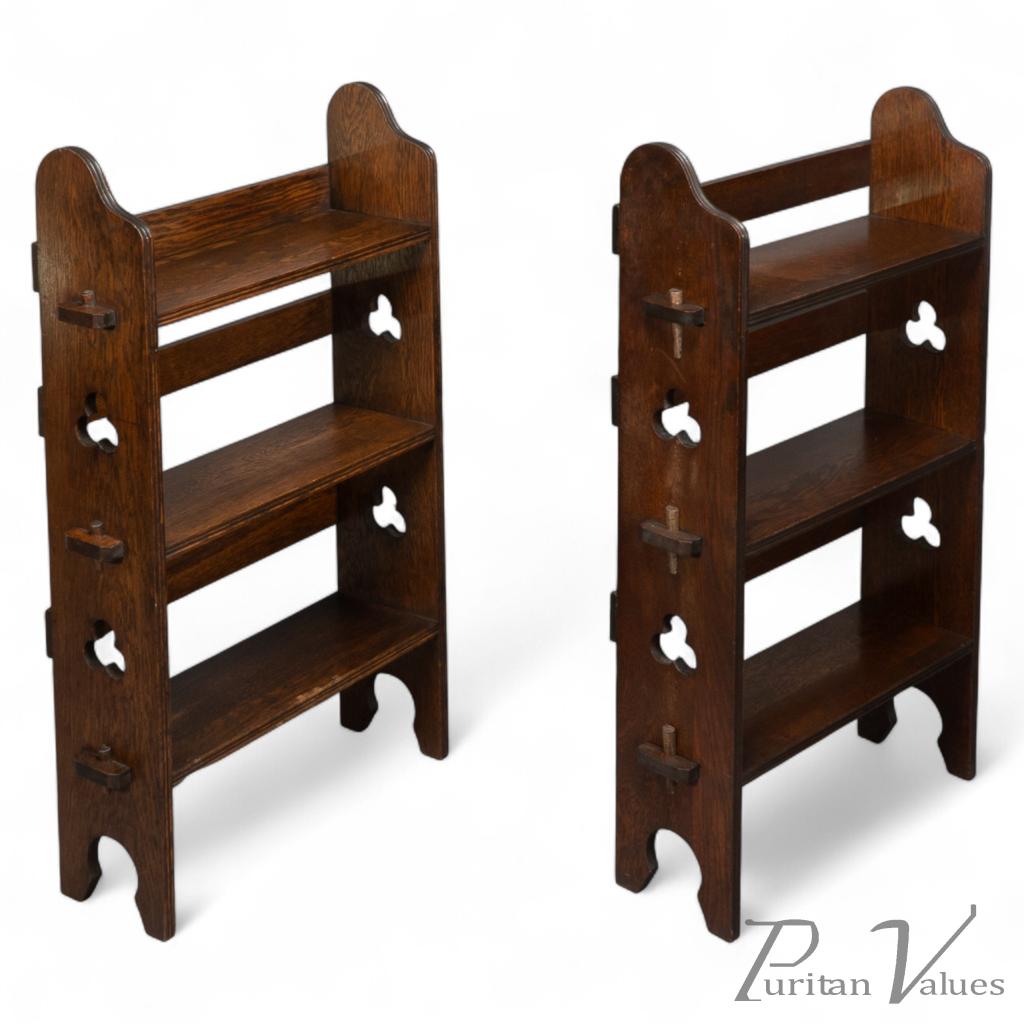 Liberty & Co., A Pair of 'the Radley Portable Bookcase', Solid Oak with Trefoil Details