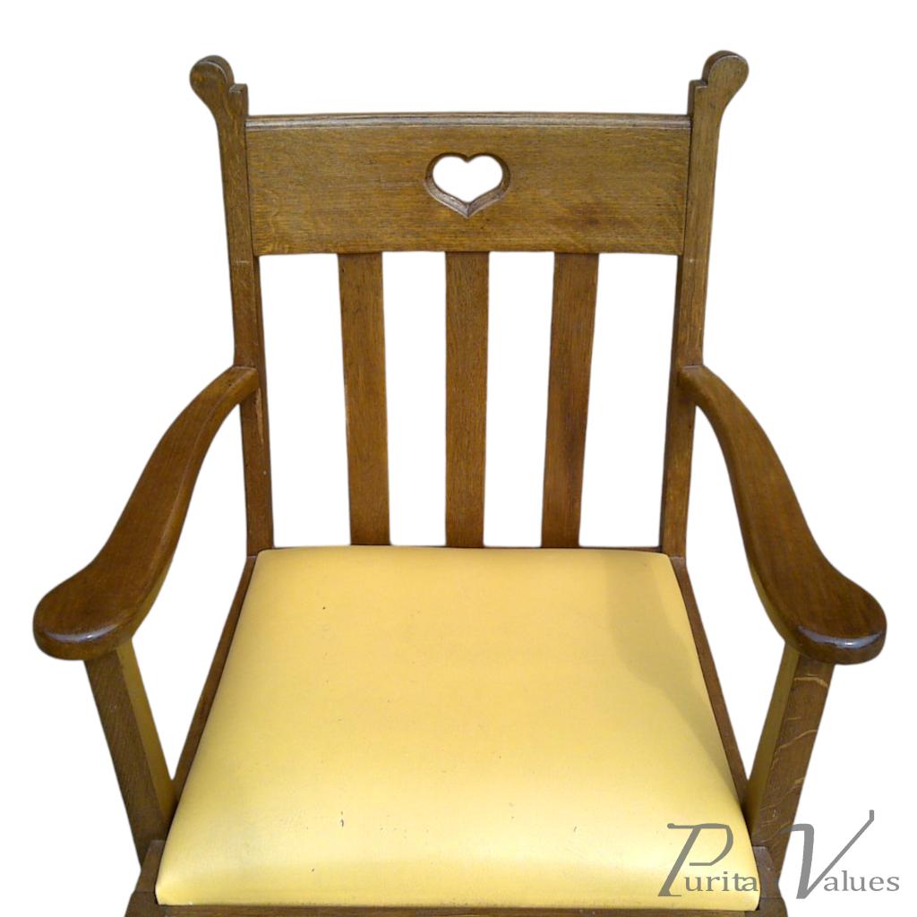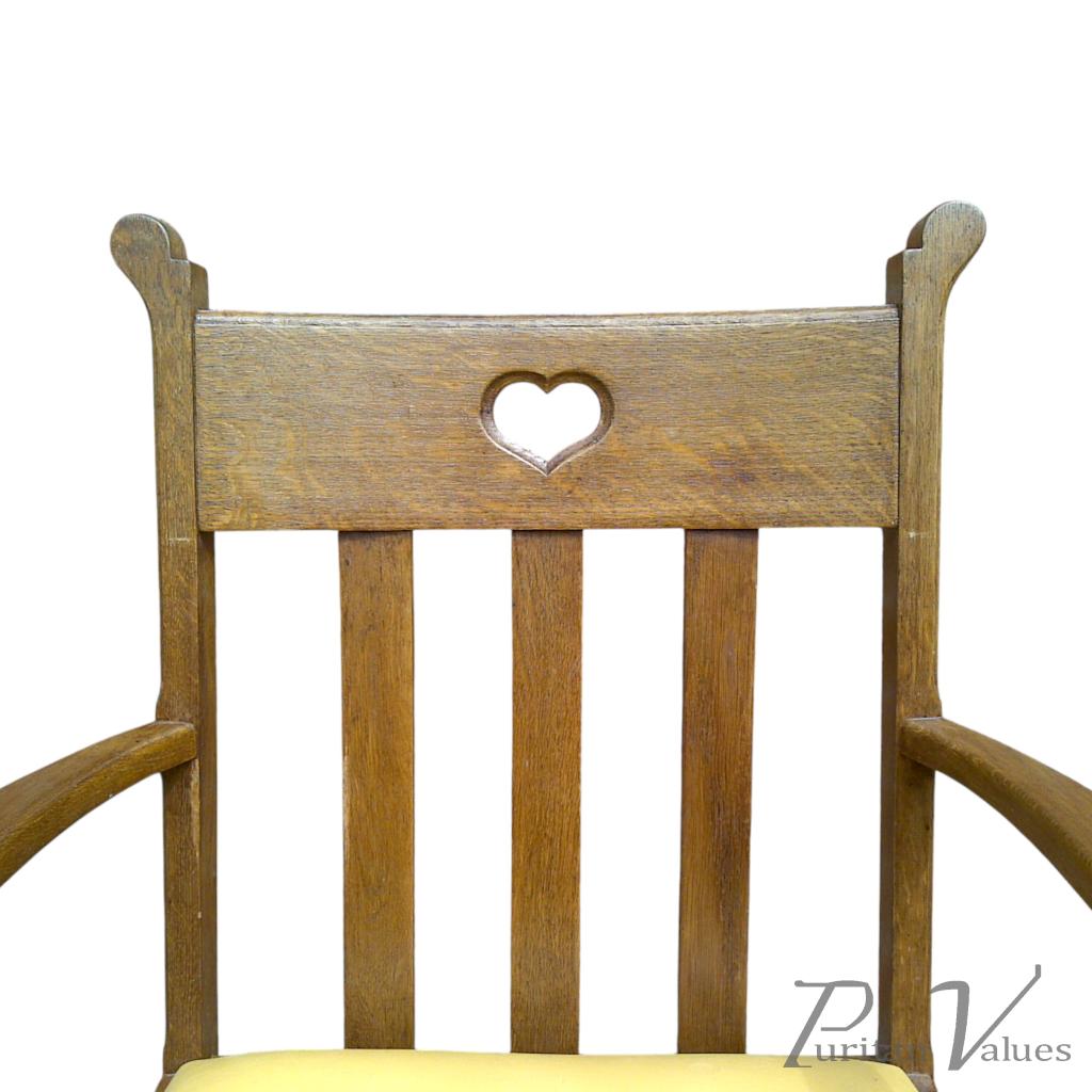 Pair of oak armchairs in the style of Liberty and Co. with heart cut-outs backs