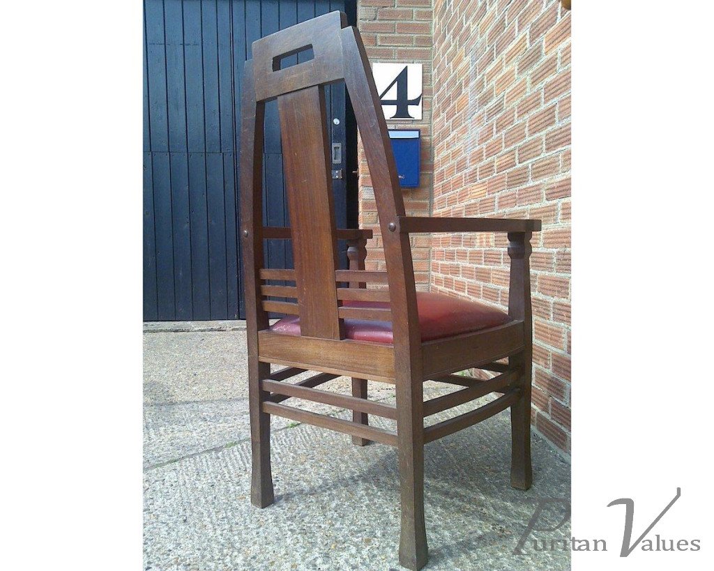 Peter Behrens, a pair of Jugendstil mahogany armchairs, the seats reupholstered in red leather. See White way, Michael and Gere, Charlotte '19th century design from Pugin to Mackintosh' London 1993, p. 262, plate 333 for a side chair of a similar pattern.