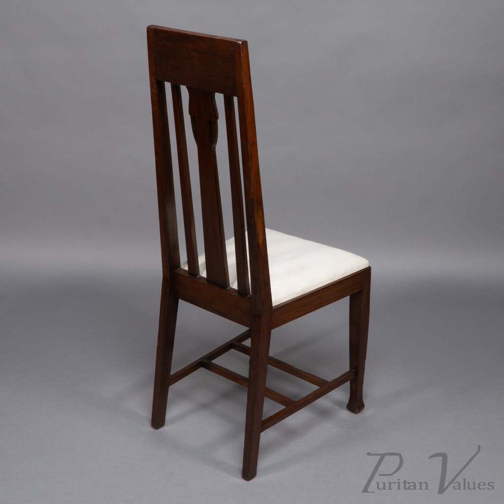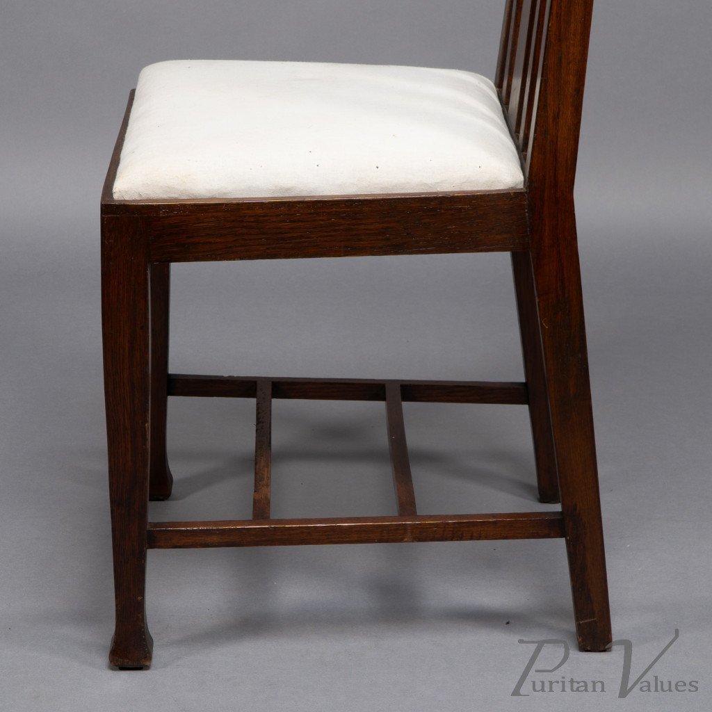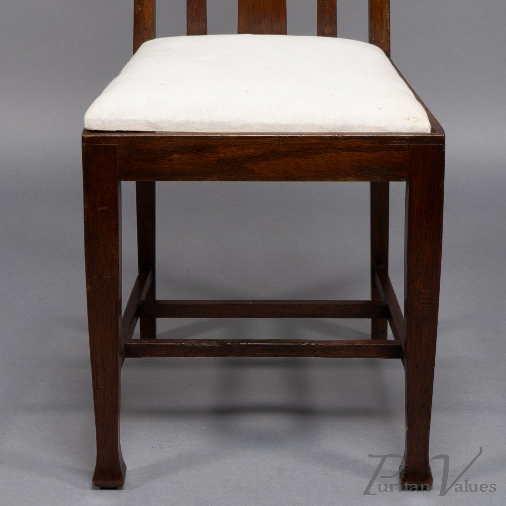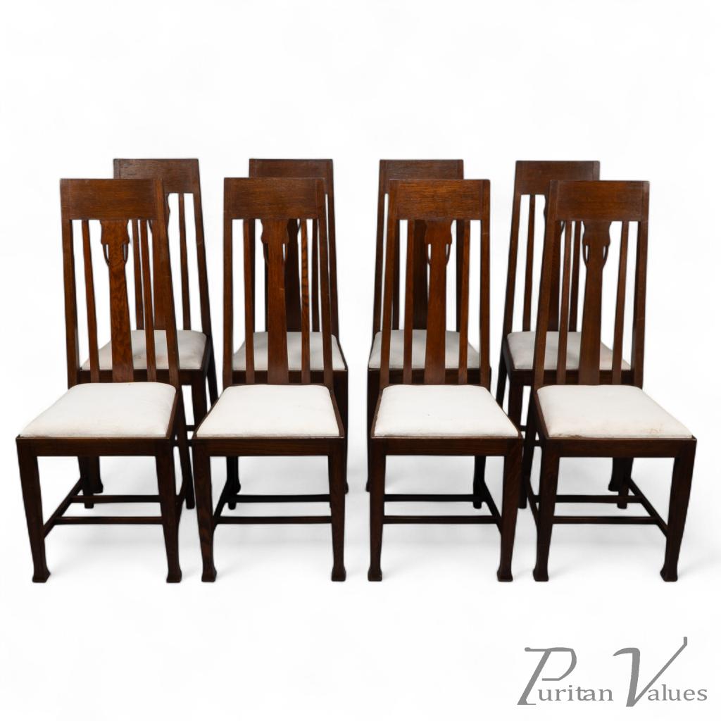 E. A. Taylor, attributed. A Set of Eight Arts & Crafts Glasgow School Oak Dining Chairs