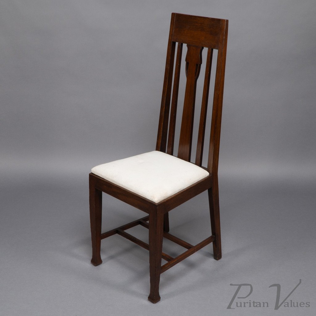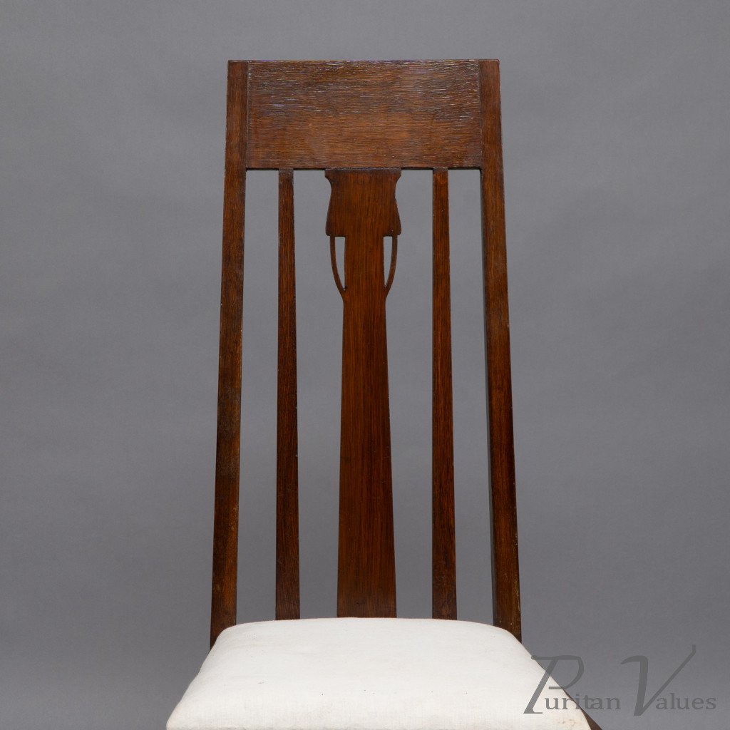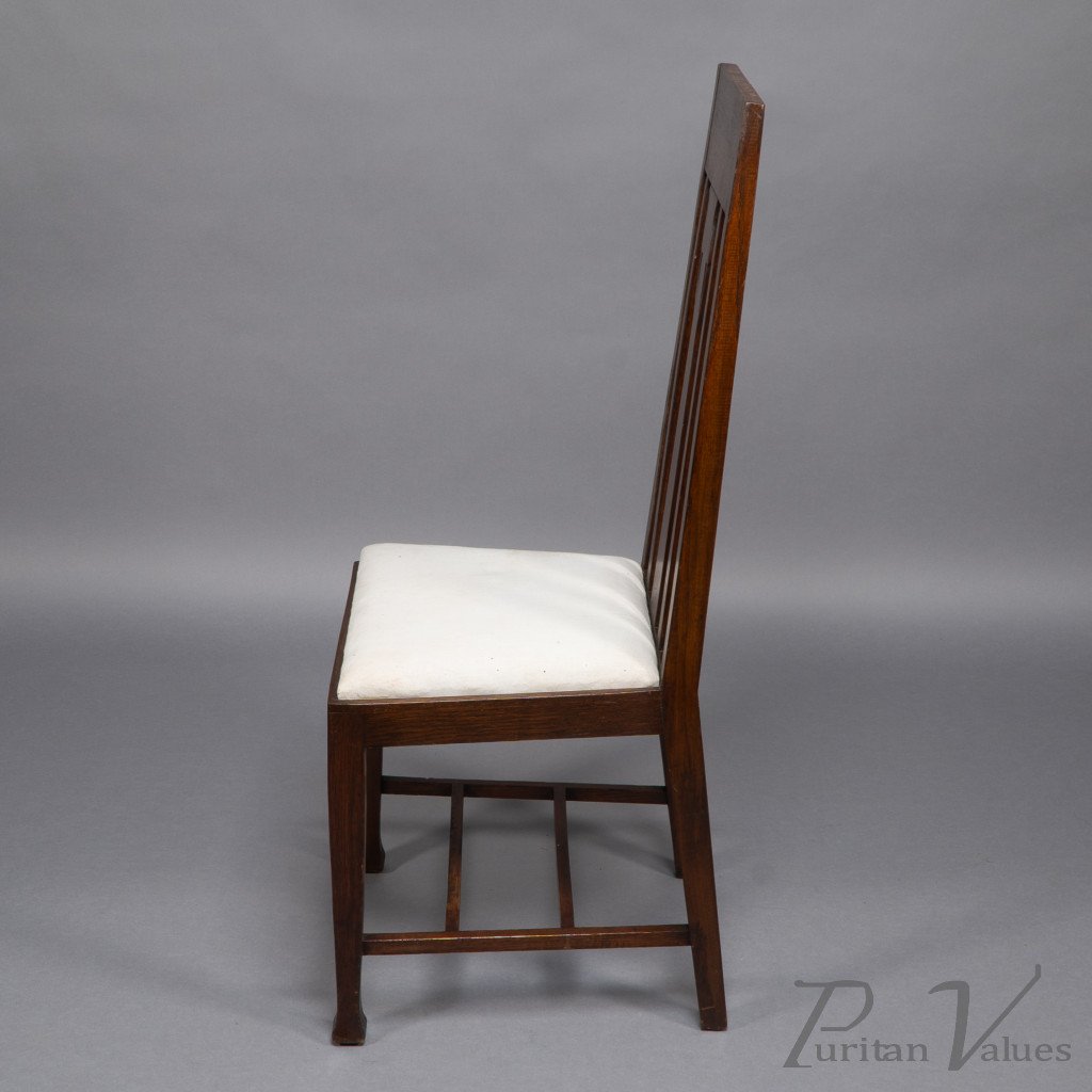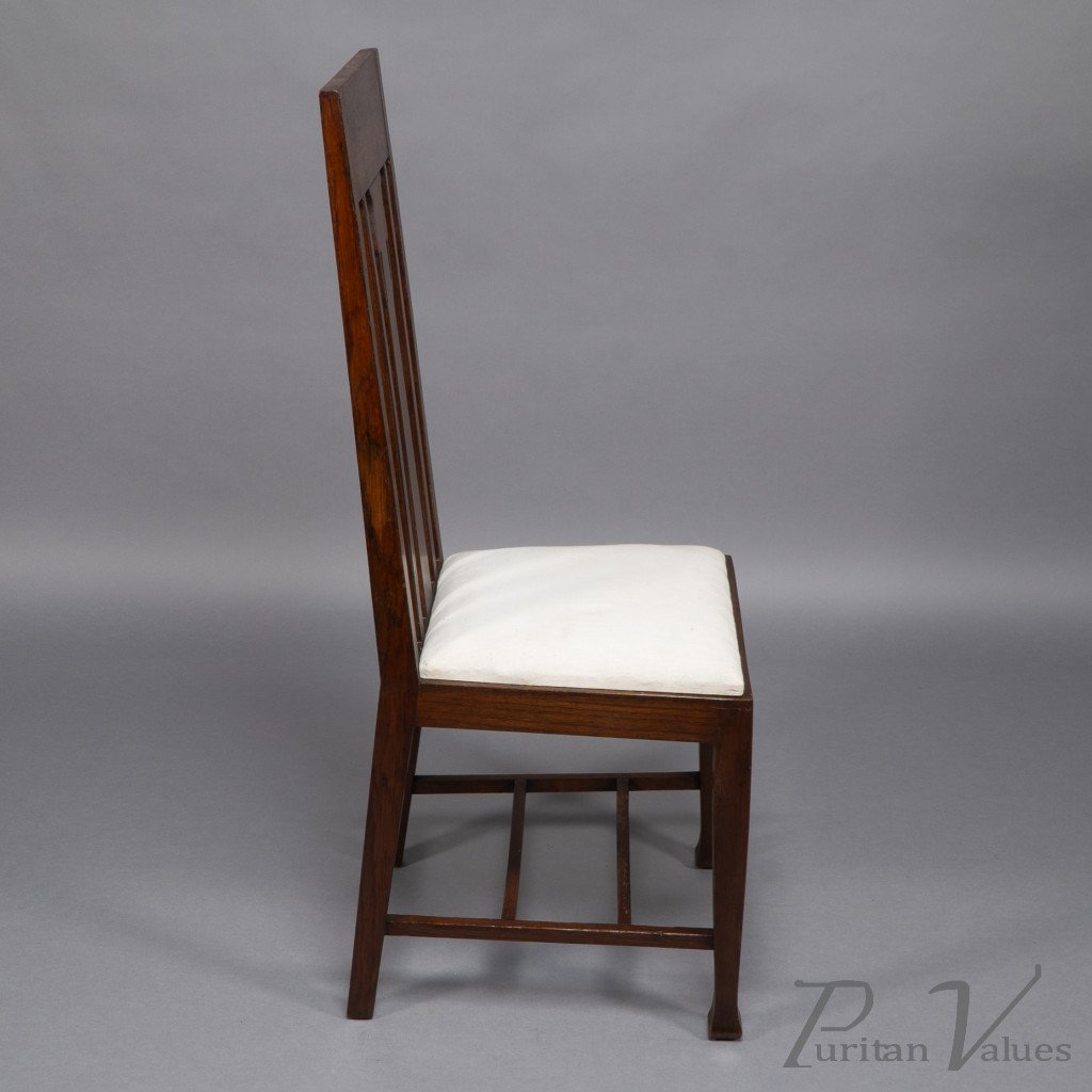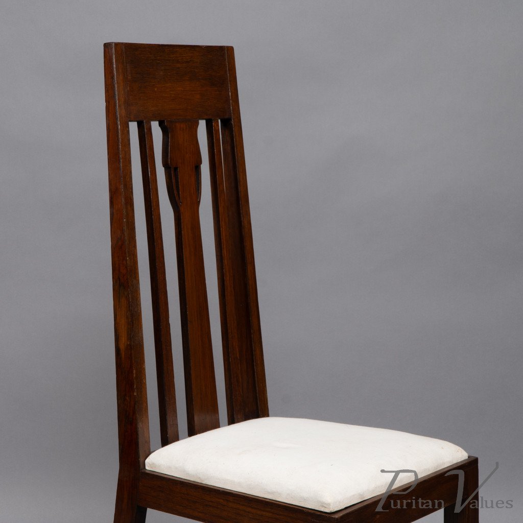 E. A. Taylor, attributed. A Set of Eight Arts & Crafts Glasgow School Oak Dining Chairs