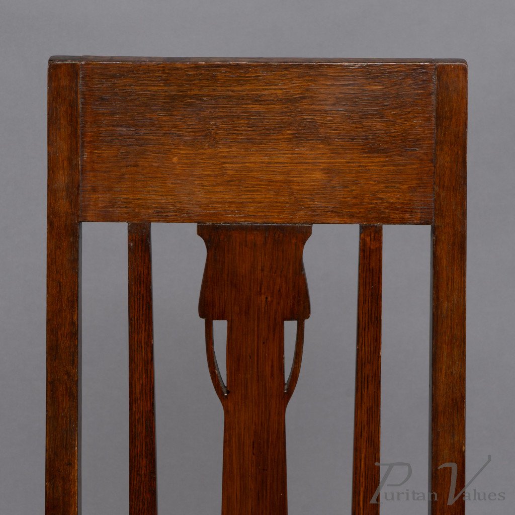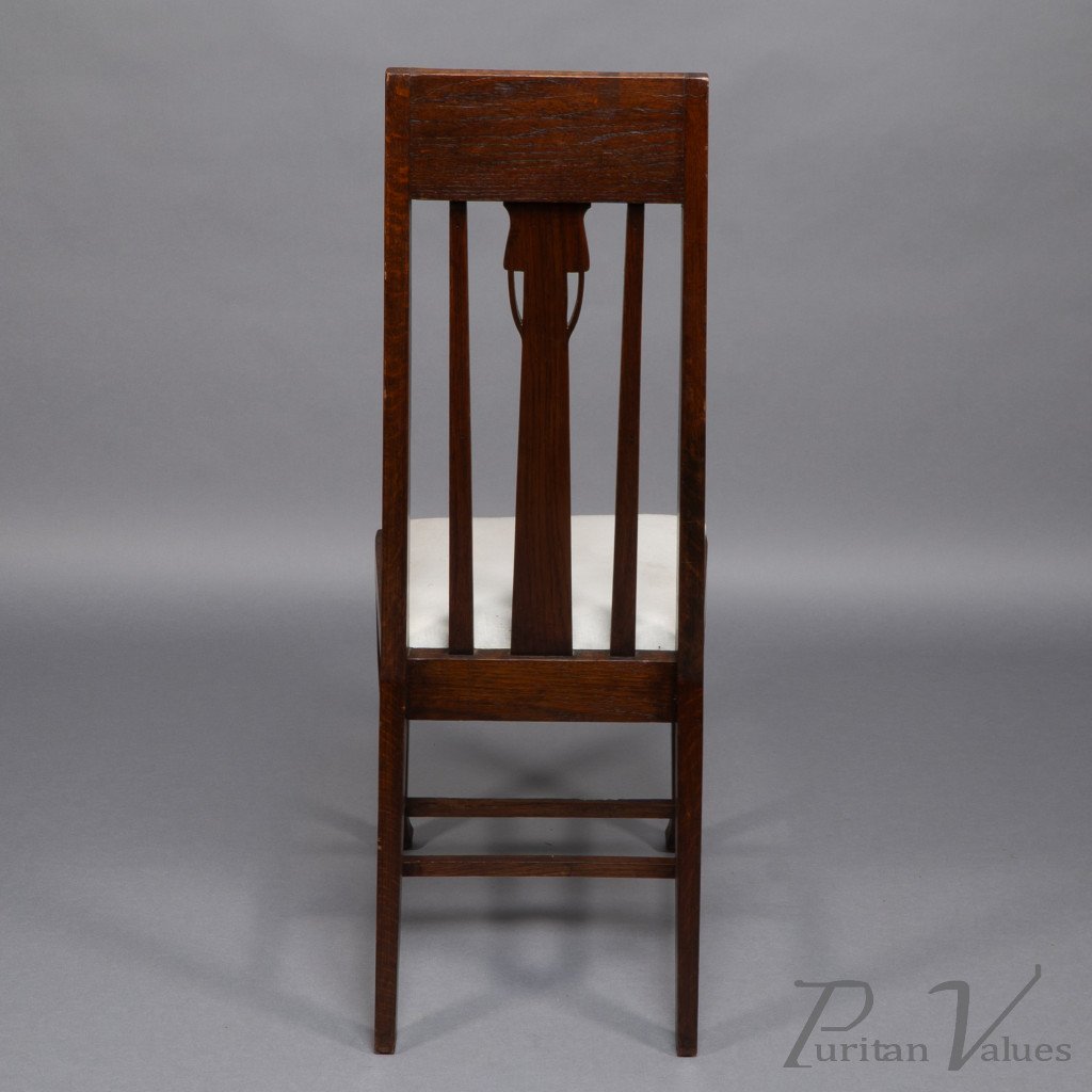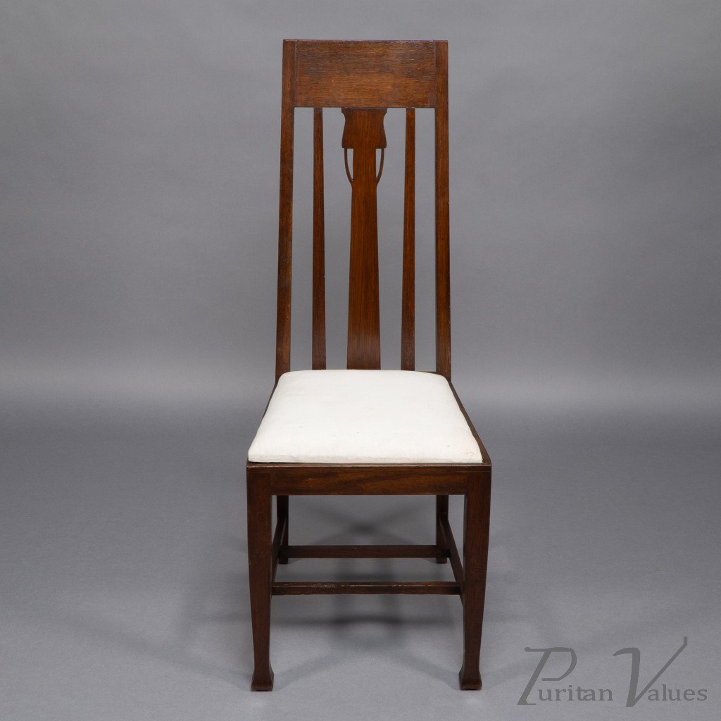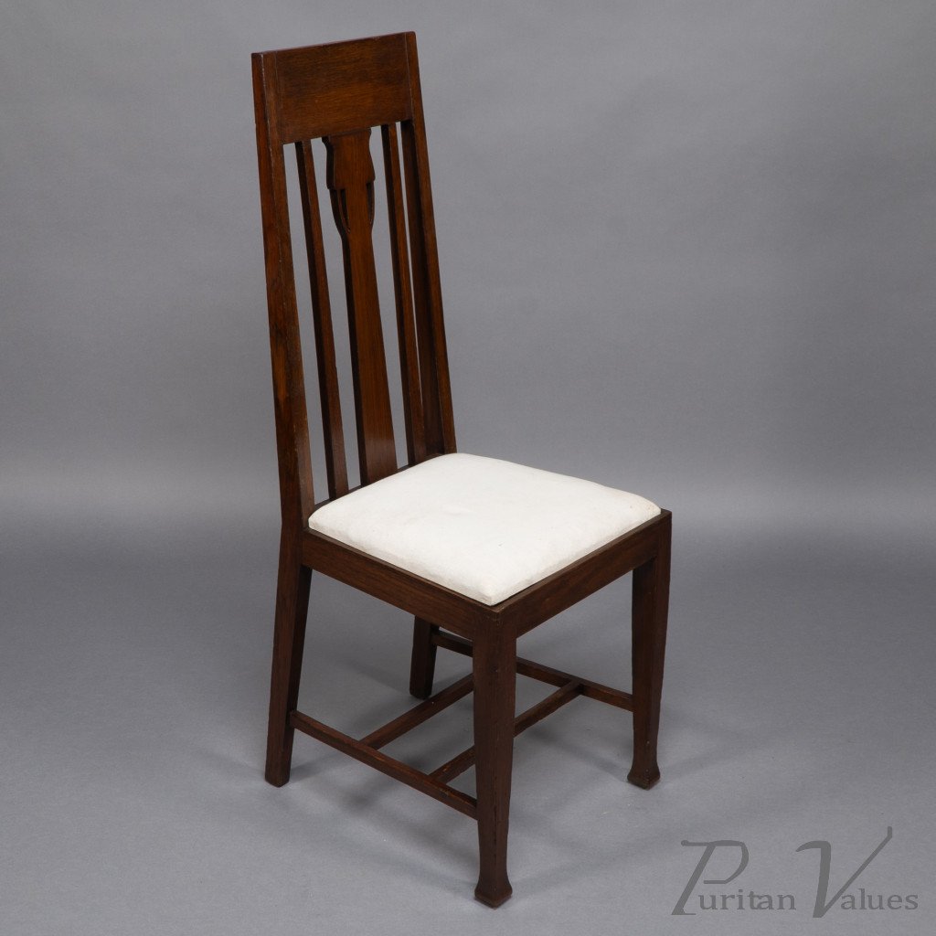E. A. Taylor, attributed. A Set of Eight Arts & Crafts Glasgow School Oak Dining Chairs