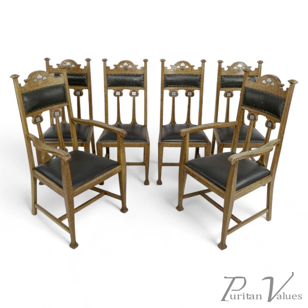 A rare set of six Arts and Crafts chairs attributed to Liberty & Co.