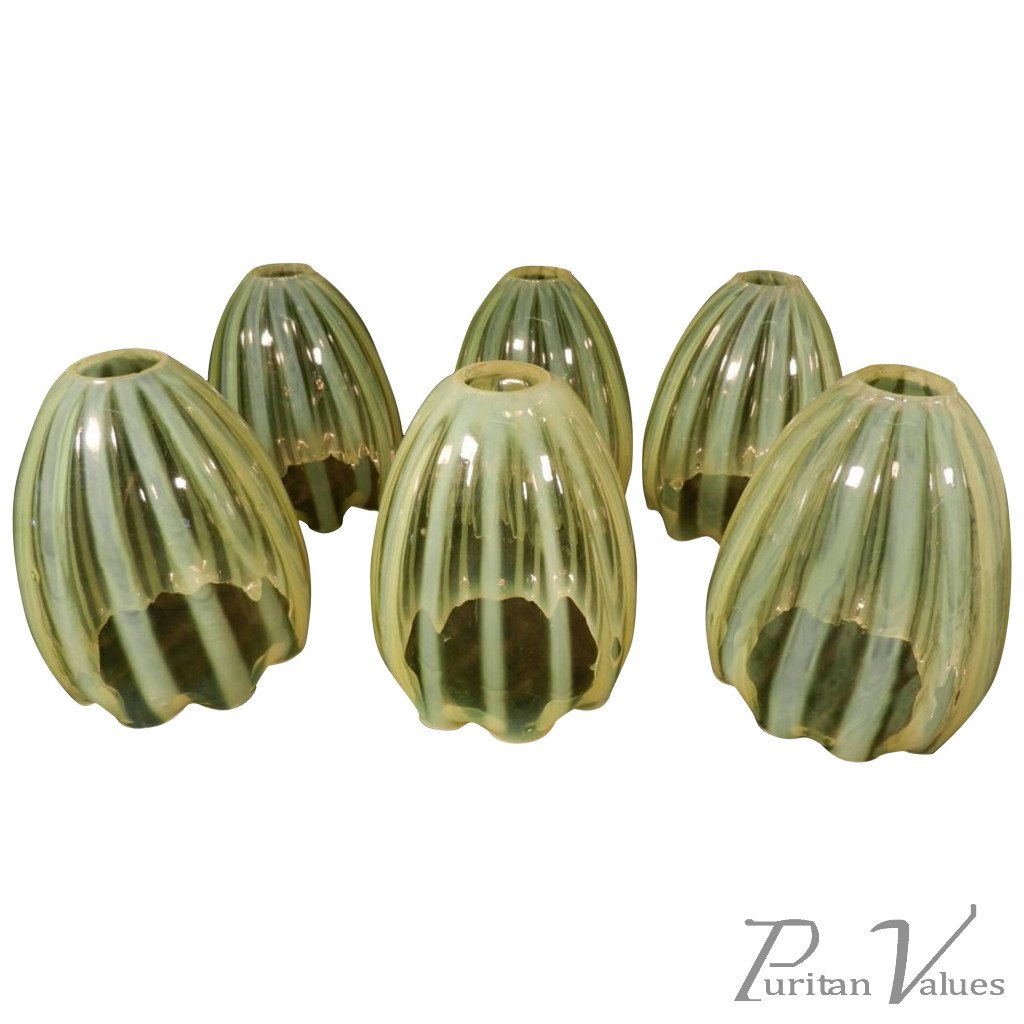 A rare set of six Vaseline shades with stripe details in the manner of James Powell.
