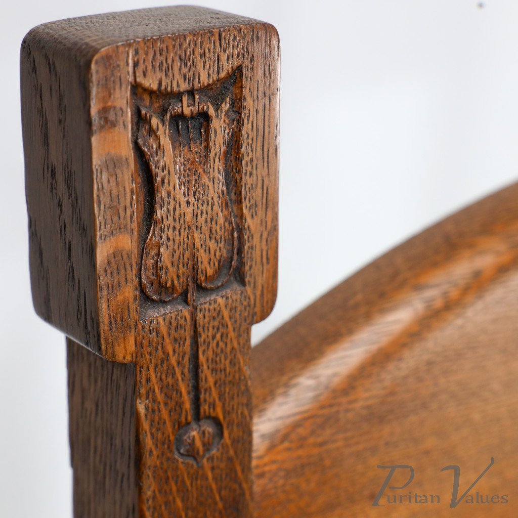 Shapland & Petter Substantial Arts & Crafts Oak Armchair with Floral Decoration