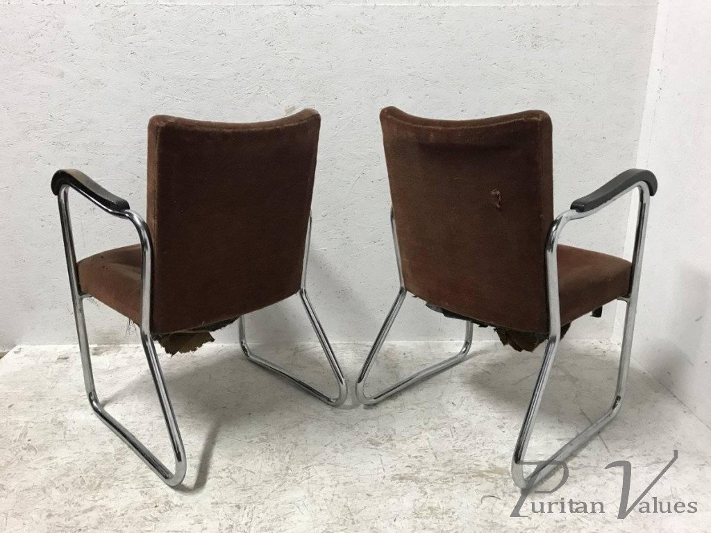 Thonet, a Pair of 1930s Tubular Steel Armchairs with Ebonized Armrests