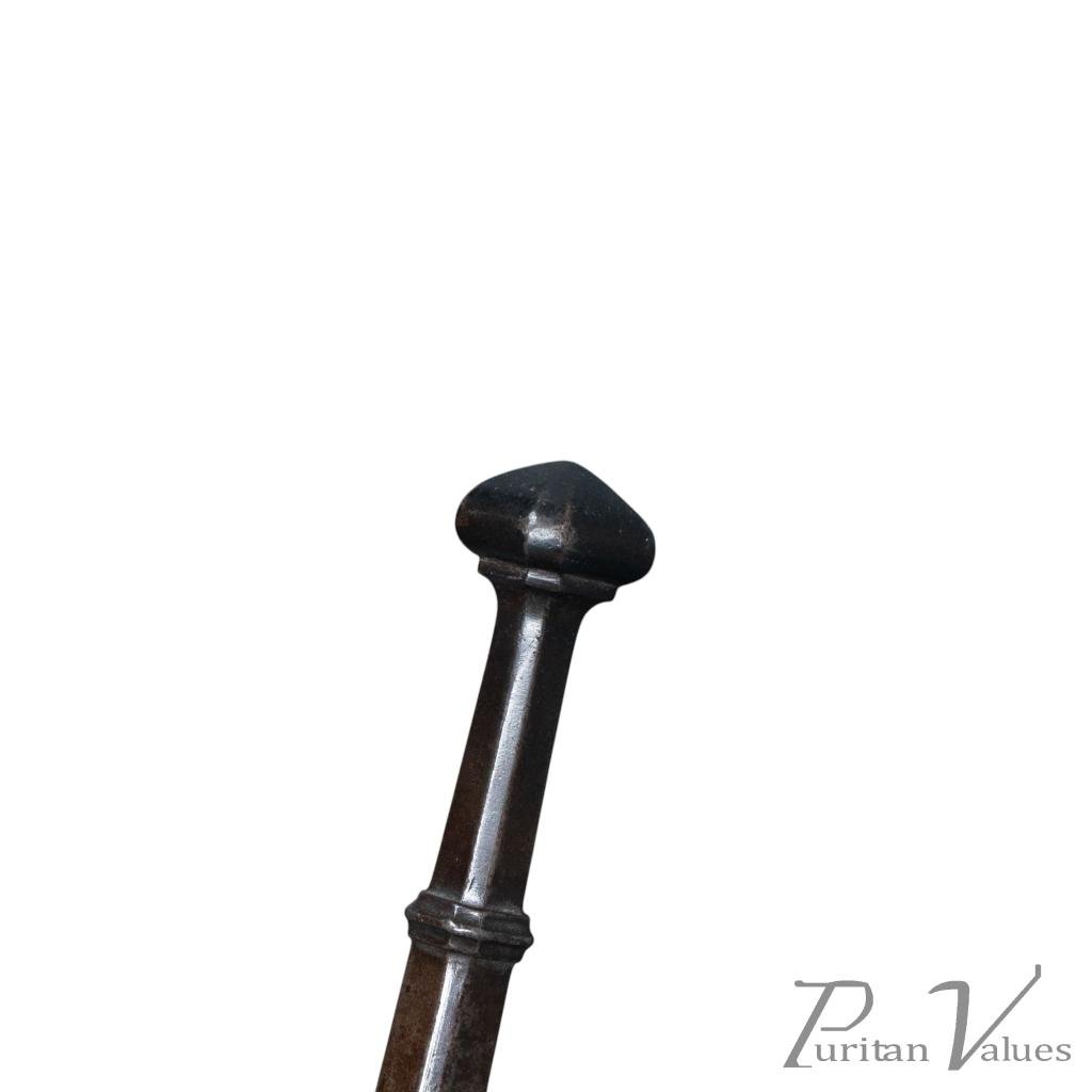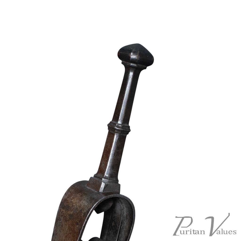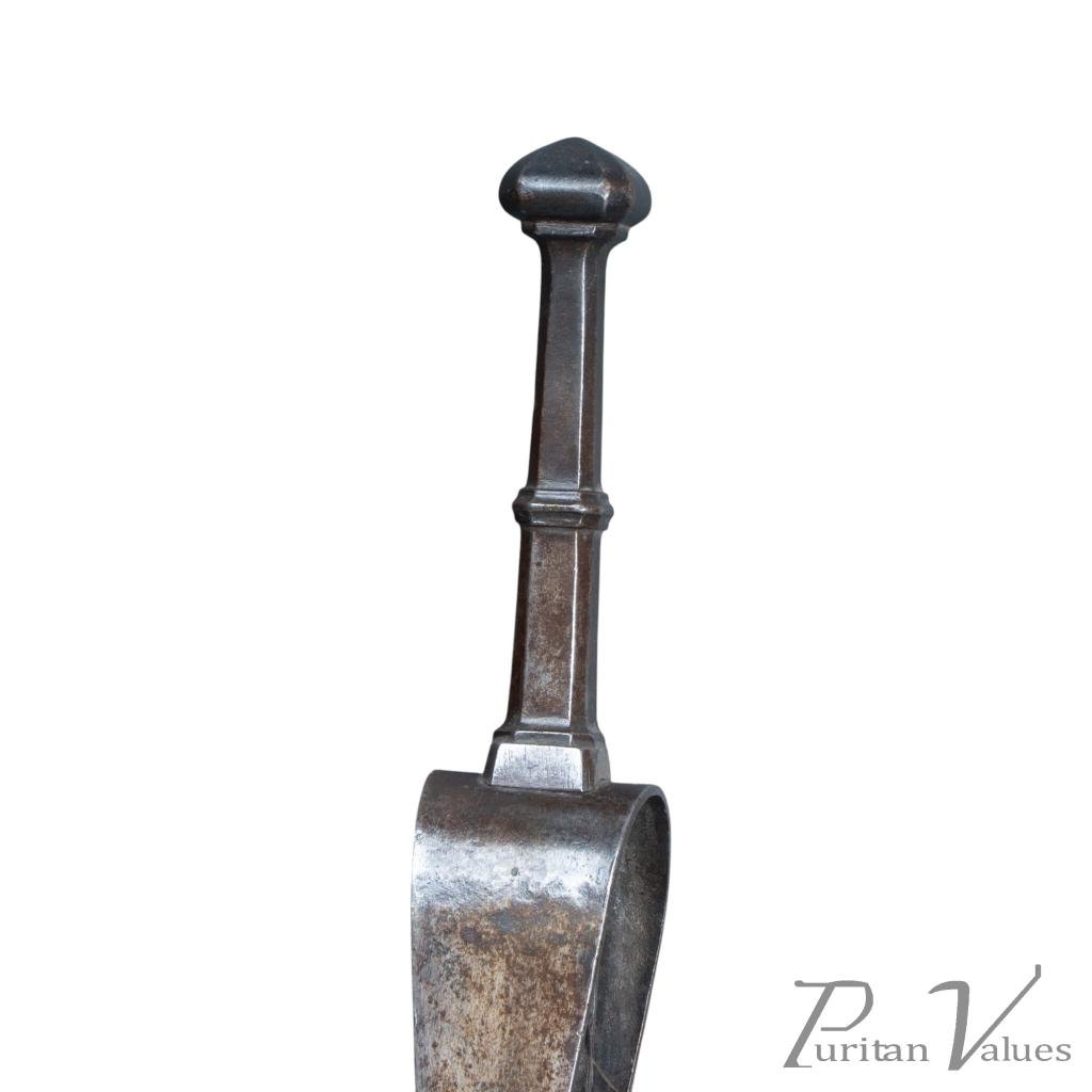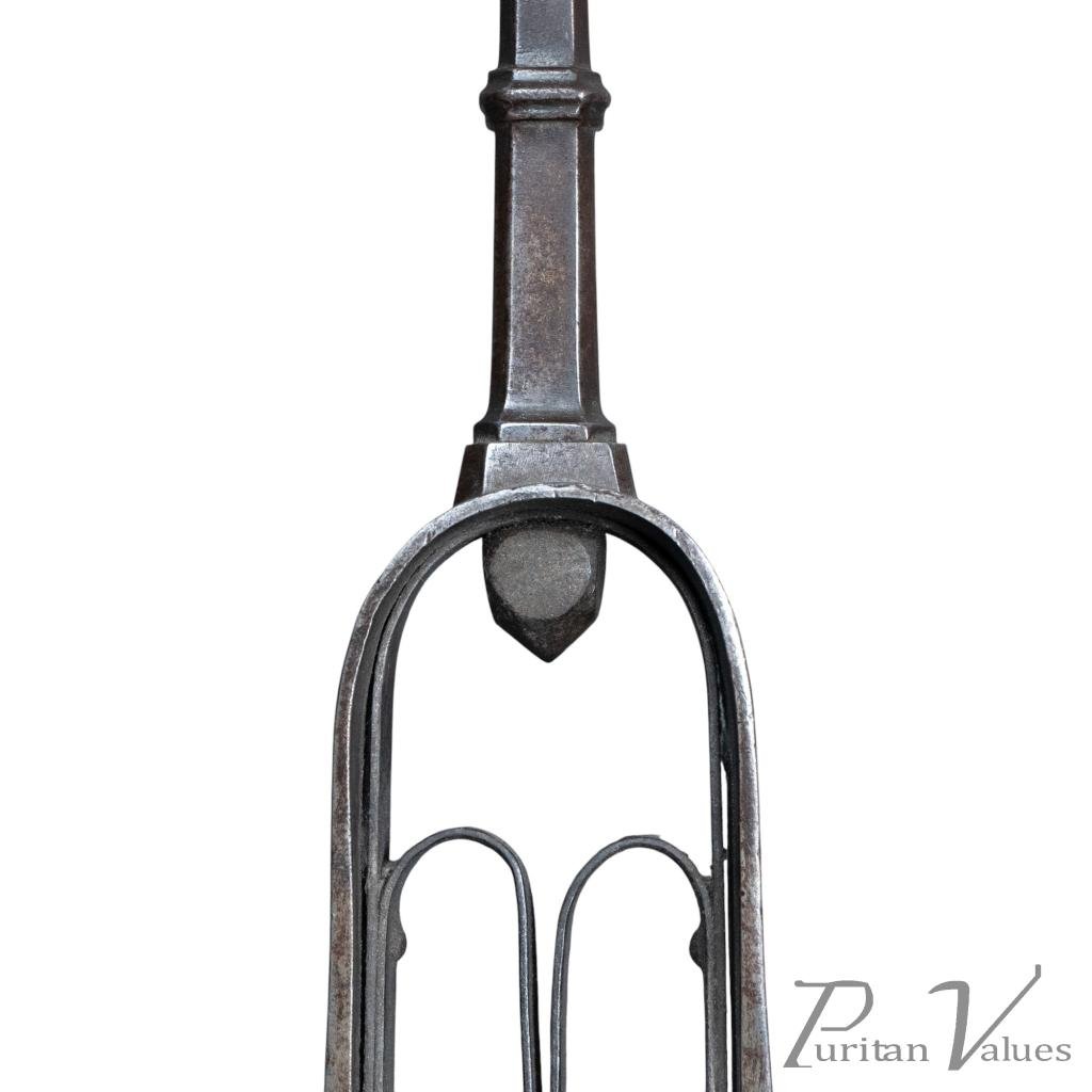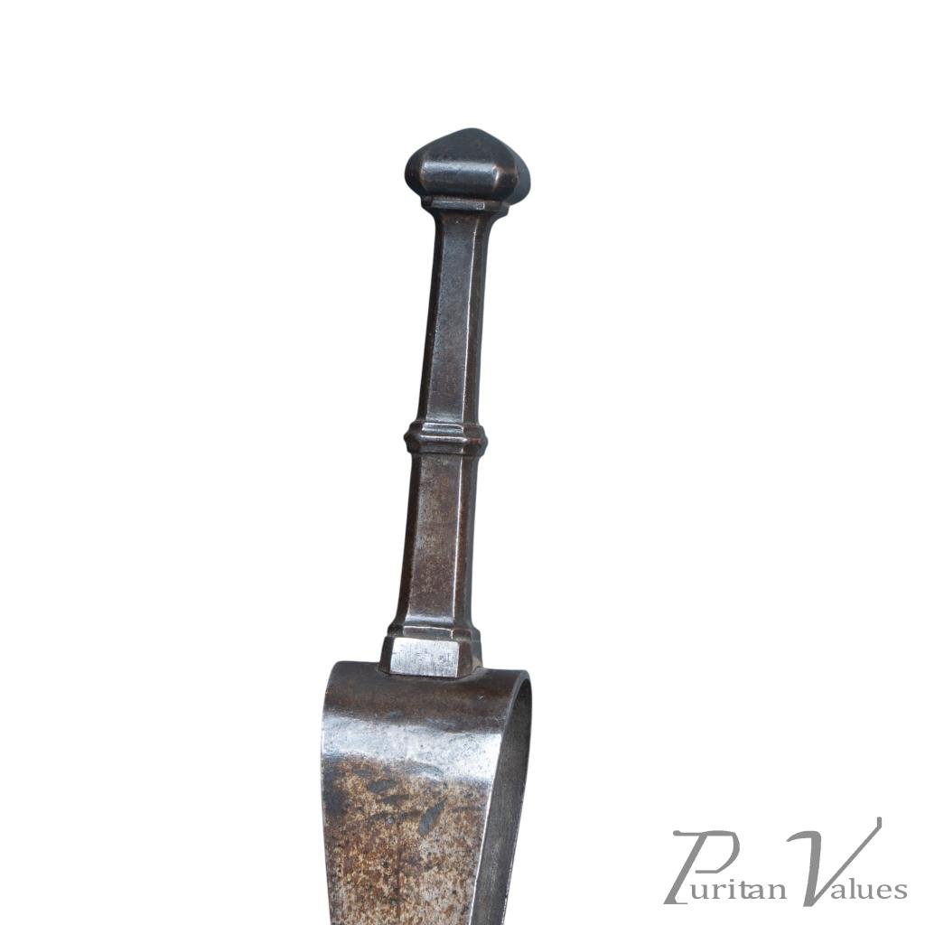 Thornton & Downer, Attributed. Arts and Crafts Cotswold School Hand-Wrought Steel Fire Tongs with Scroll Finials