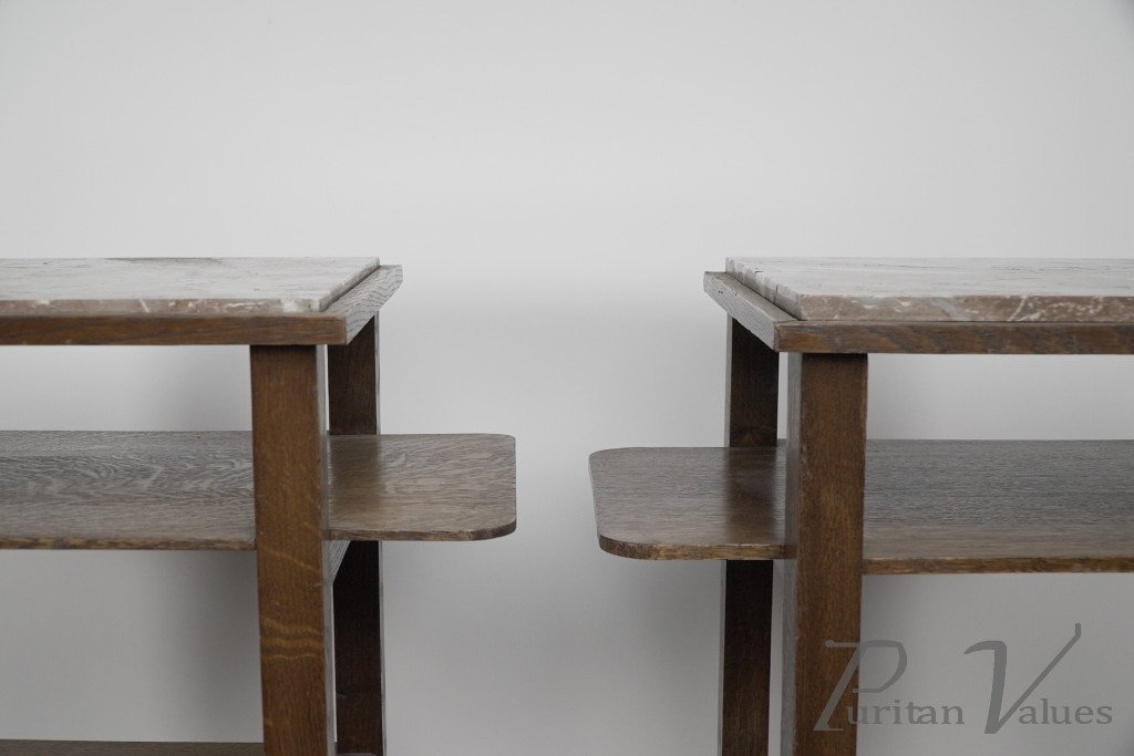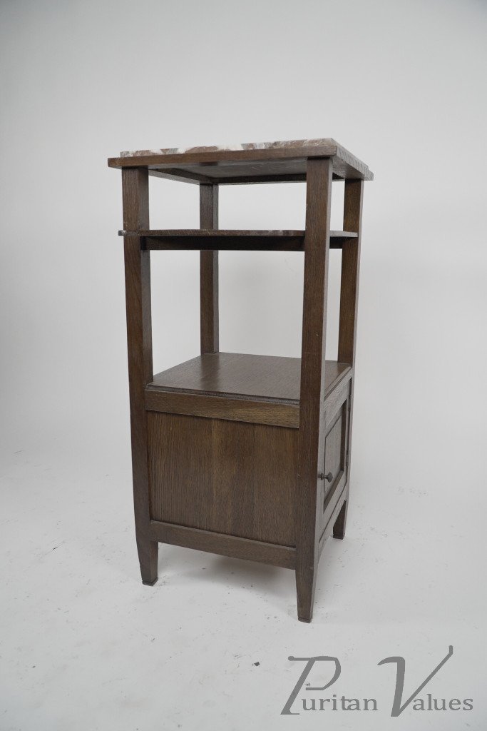 Three Arts & Crafts Oak Bedside Cabinets with Marble Tops and Extending Shelves