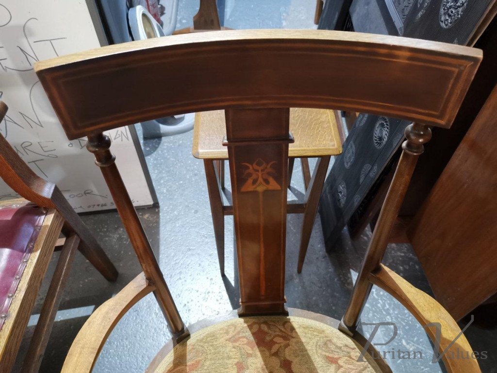 Two Arts & Crafts Armchairs inlaid with Abalone, Walnut, Boxwood & Sycamore