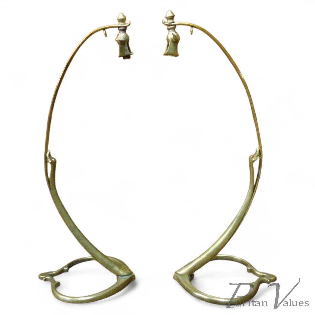 William Arthur Smith Benson (1854-1924). A pair of brass swan table lamps with heart shaped bases. Height 18 1/2" Width 6 1/4".