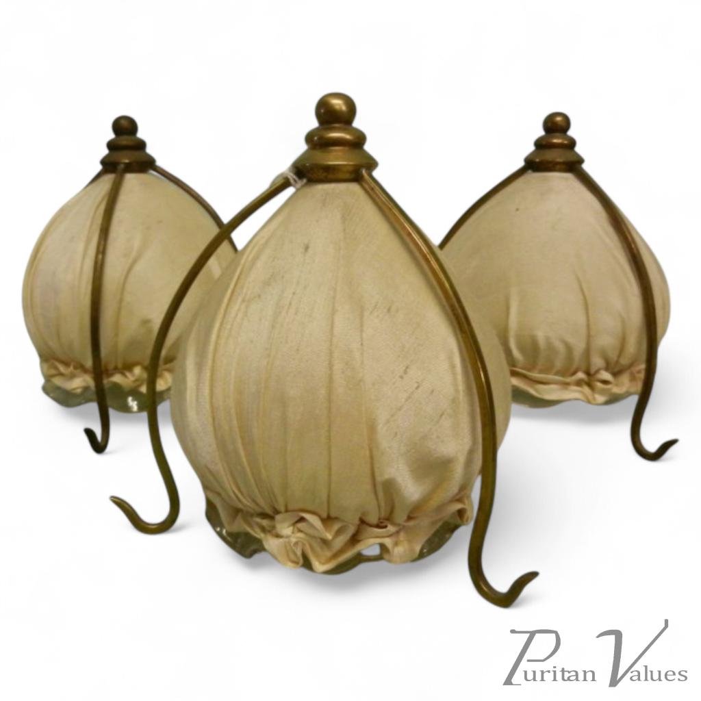 A rare set of three WAS Benson shades with original silk coverings.