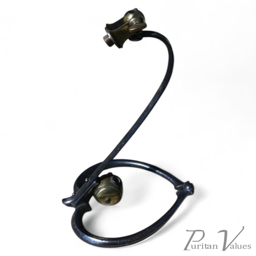 WAS Benson. A rare steel table lamp by WAS Benson with heart shaped base and original brass switch. Height 10", Width at base 5".