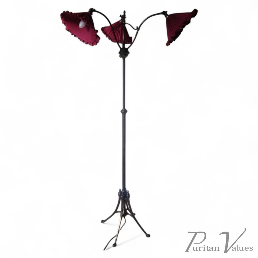 William Arthur Smith Benson (1854-1924). A rare three branch adjustable standard lamp with extending and inverting shades.