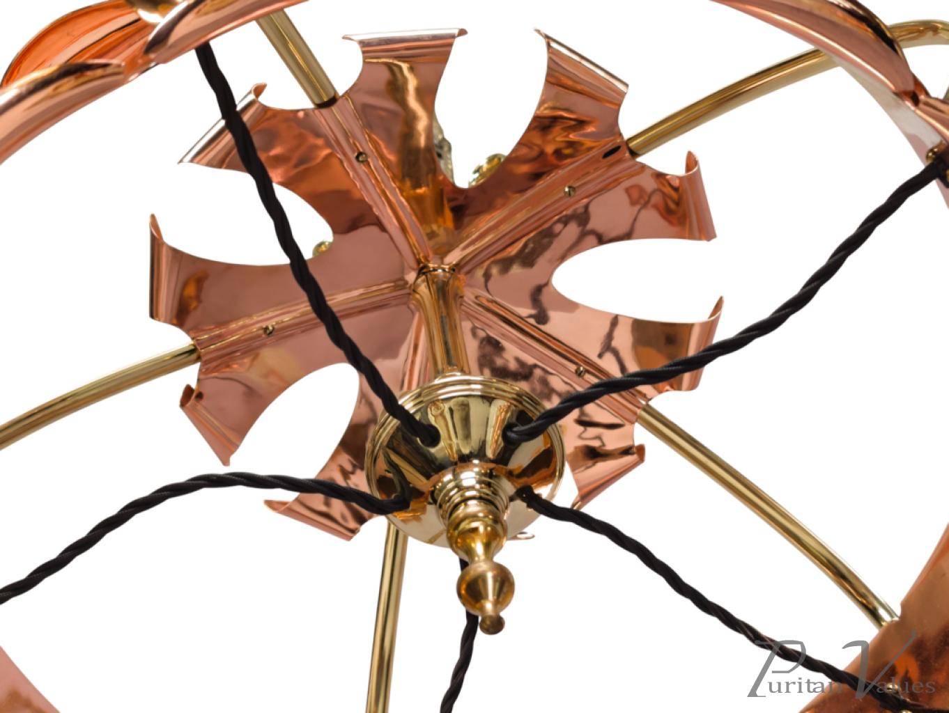 The whiplash arms flow down to join the circular copper ring, which has decorative curved over edges to the top and bottom of the ring.