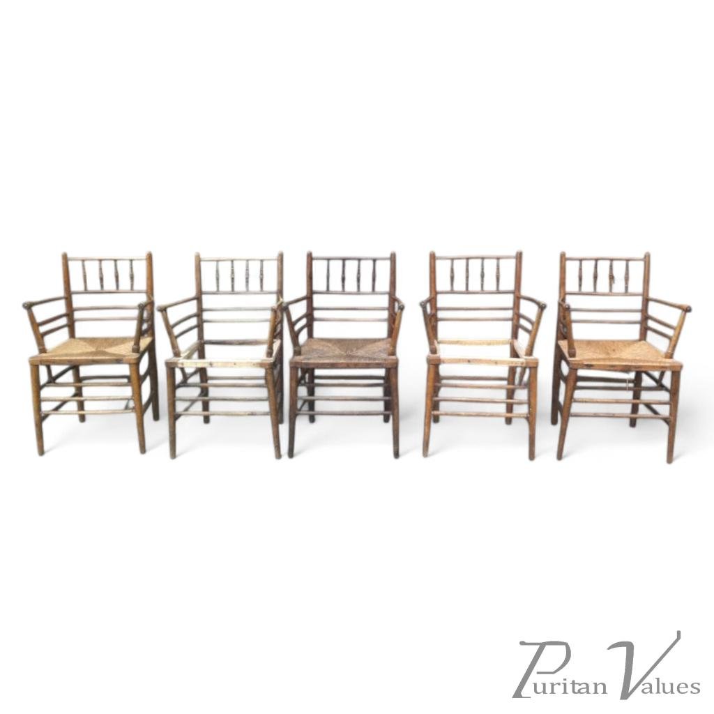 William Morris. A run of beech and oak Sussex chairs