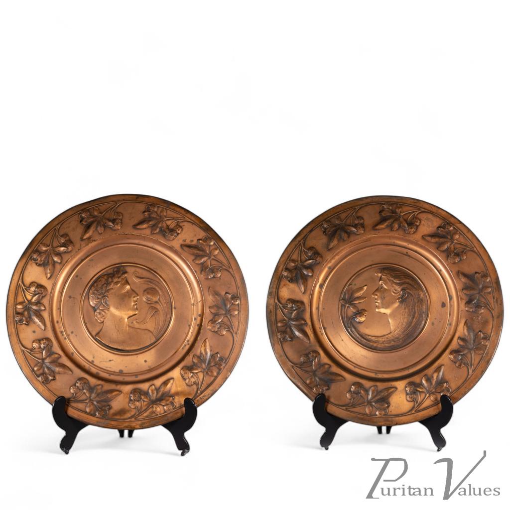 WMF – Pair of Brass Wall Plaques with Embossed Portraits