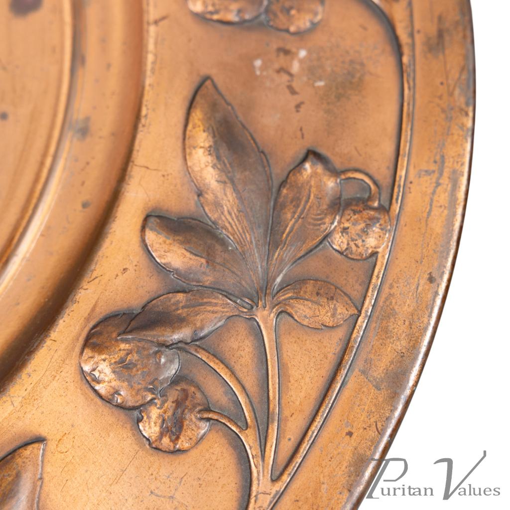 The softly domed surfaces reflect light across the relief, enhancing the rhythmic outlines of the tendrils and the gentle modelling of the figures. This pair shows the firm’s technical skill and the expressive elegance that define Continental Art Nouveau design.