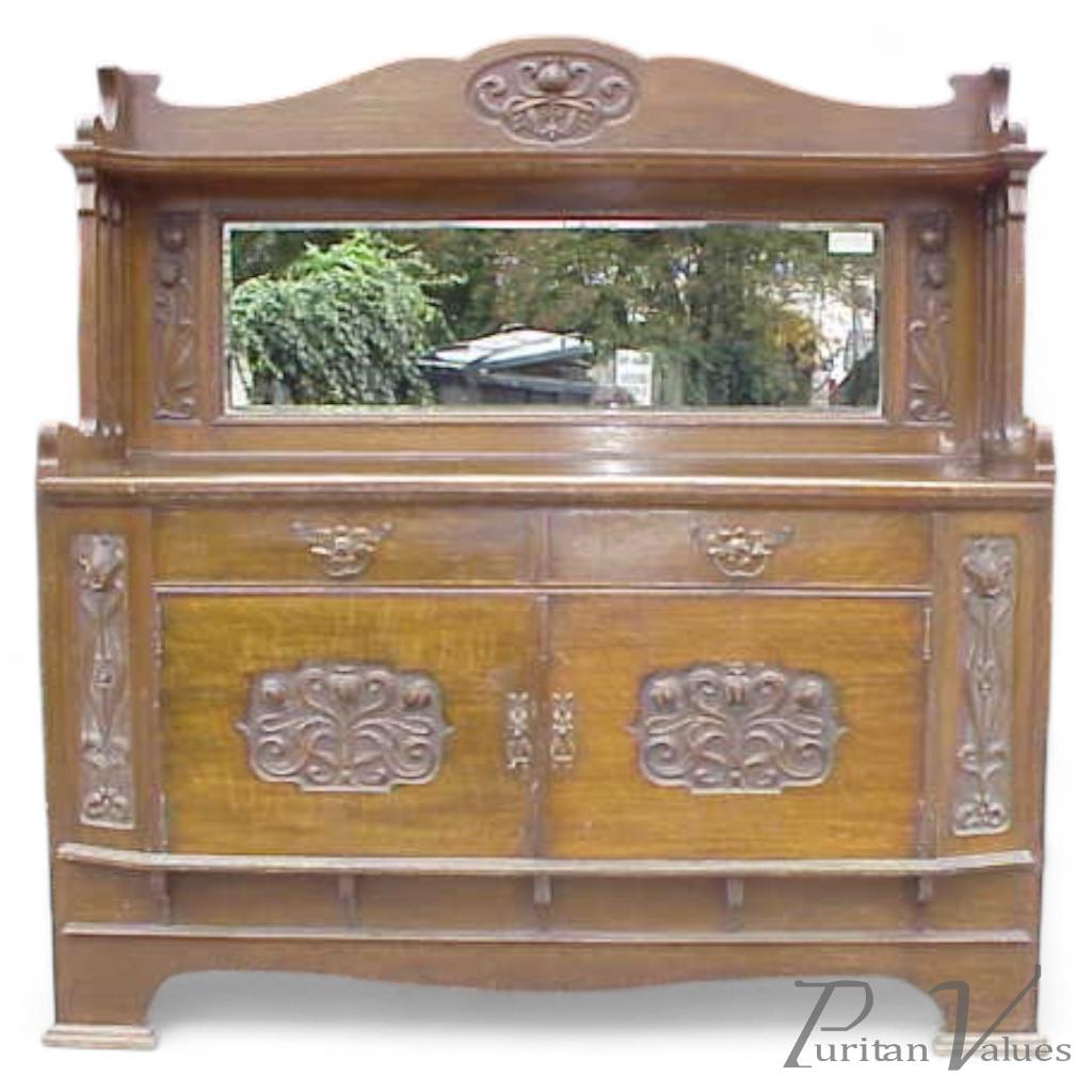 This sideboard is in one piece. Height 70", Width 66", Depth 22". Circa 1900.