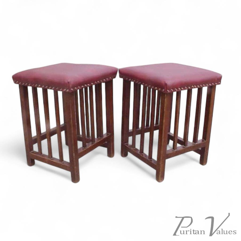 Wylie & Lochhead. A Pair of Arts & Crafts Glasgow School Stools with Slatted Sides